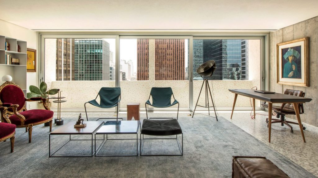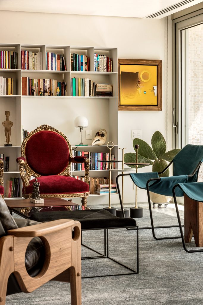 A Sao Paolo-i 250 négyzetméteres lakás eklektikus berendezésének minden darabját imádjuk és leginkább azt, ahogy ez a különböző stílusokból és merész színekből összeálló egész mennyire jól működik. Látjuk magunkat abból a piros bársonyszékből parancsokat osztogatni.