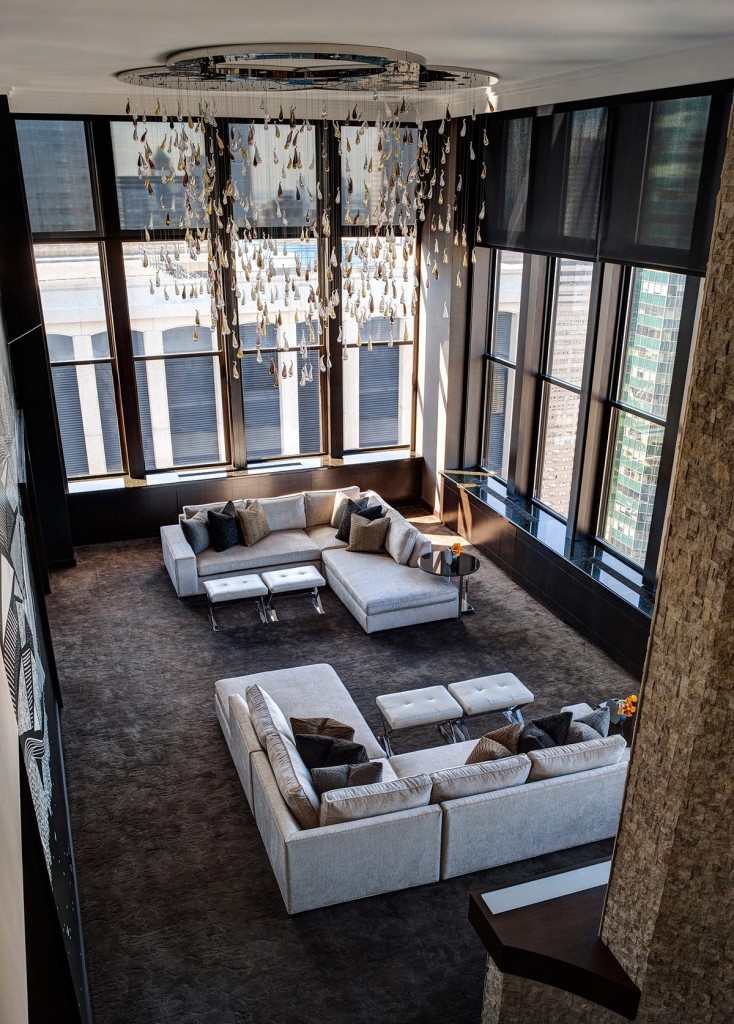 Kortárs műtárgyak, kilátás Manhattanra, bronz és bézs tónusok és fél focipályányi alapterület. Ezt tudja a Dom Peringon manhattani kérója, amit a BBG-BBGM iroda tervezett Amy Jakubowski vezérletével.