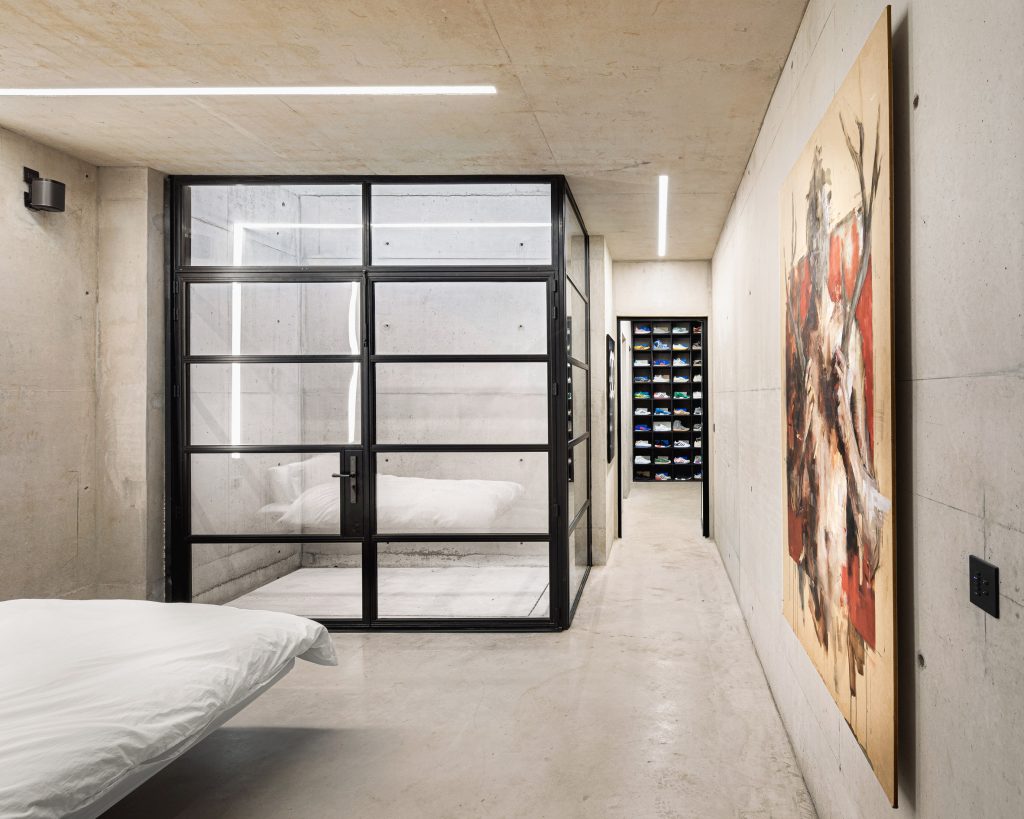 Moreton Paddox faluban épült ez a teljesen beton ház, acél részletekkel. Valószínűleg nem kifejezetten illik a környék házaihoz, de nem is ez lehetett a cél; az építészek egy légies és brutalista házat szerettek volna, ami a kültéri medence alá lelépve folytatódik, lassan tárva fel tereit. Kiállítótérként könnyebb értelmezni, mint családi házként – mindenesetre nagyon egyedi építészetileg.