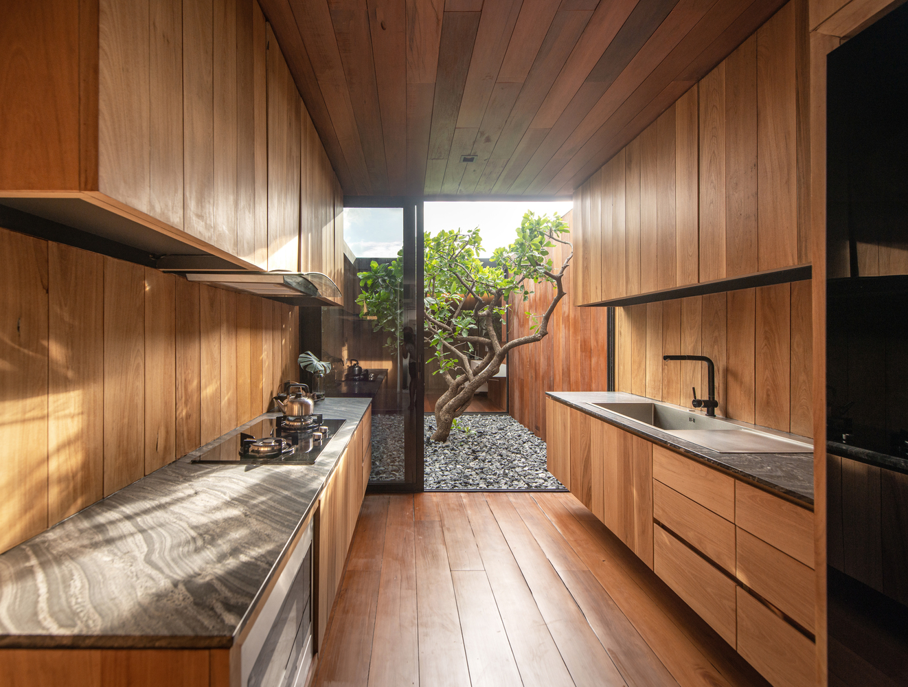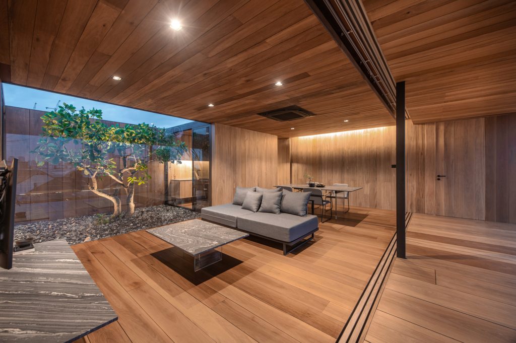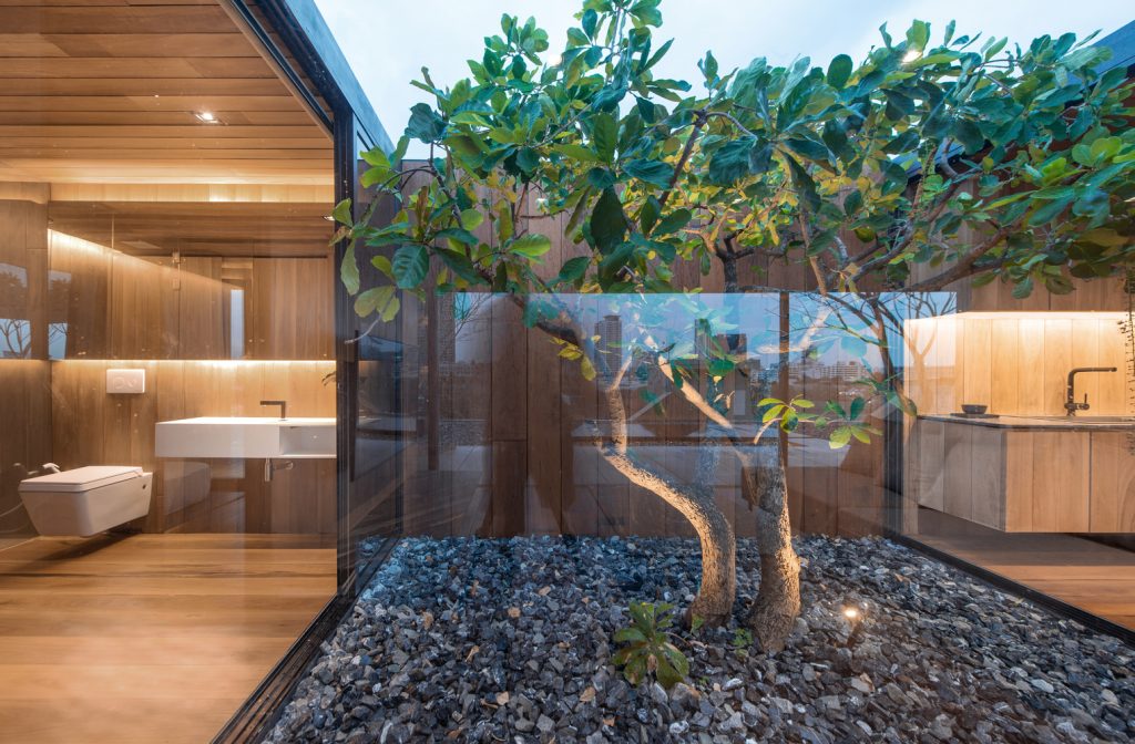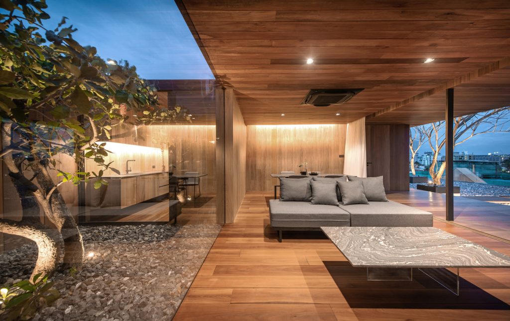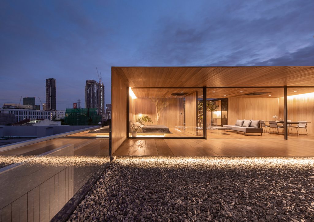 A 150 négyzetméteres tetőre épített lakás Khet Chatuchak épült: a tulajdonosé az egész épület, az alatta lévő öt lakást kiadja és úgy döntött, felköltözne a tetőre, ahol eddig semmi sem volt. Hangulatos fafalak, urbánus kilátás, levegős terek, modern dizájn: eléggé odatették ezt a pecót.