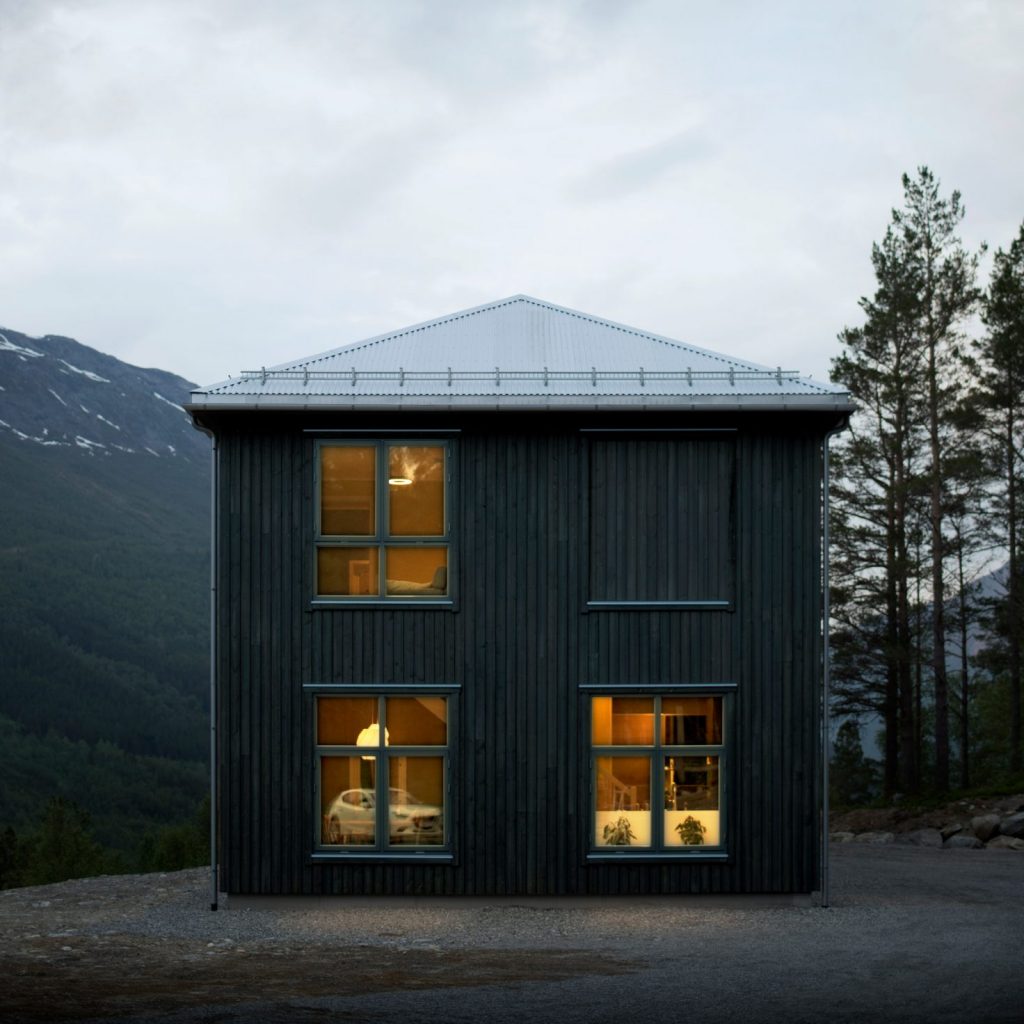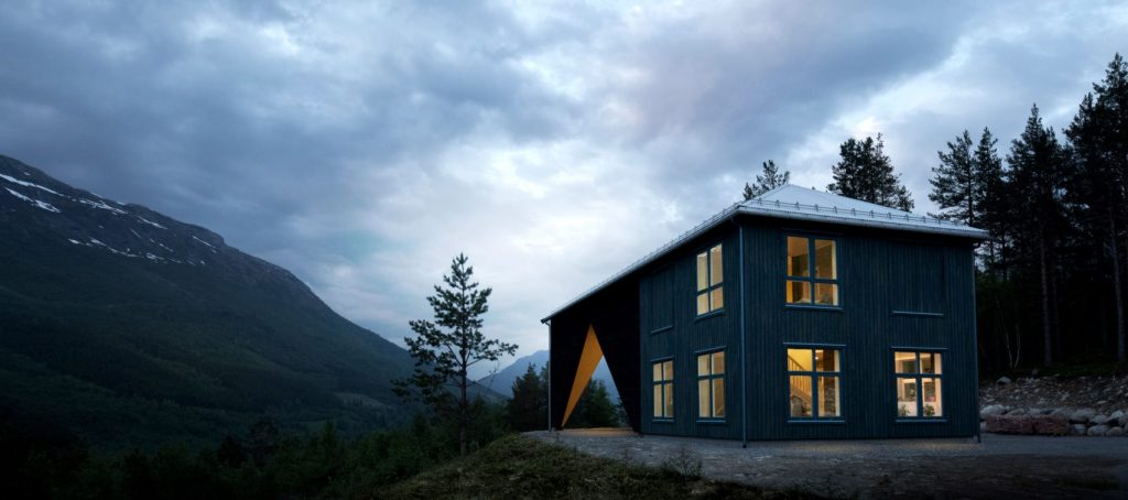 A ház Øksendalban épült, Sunndal egyik részén és varázslatos hegyek veszik körbe. A faépületben a földszinten található a nappali, a konyha és egy mosókonyha, az emeleten pedig a háló, a gardrób, egy tévés-társalgós nappali és a fürdő.
