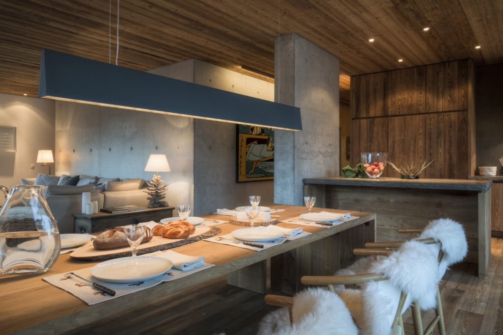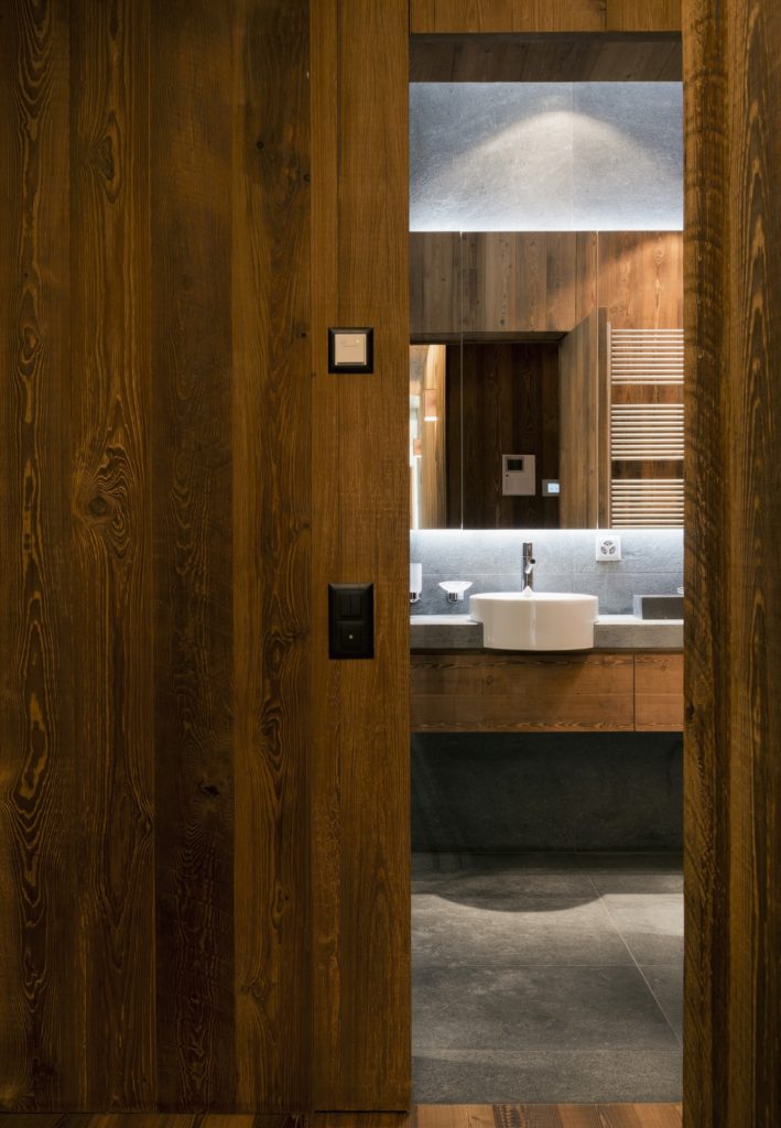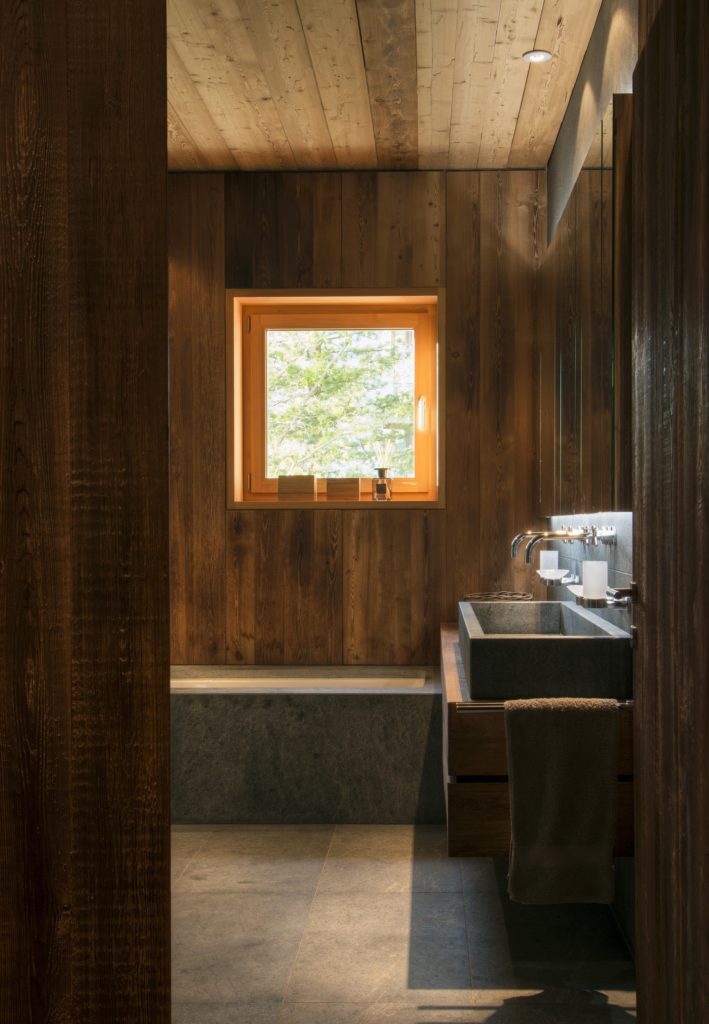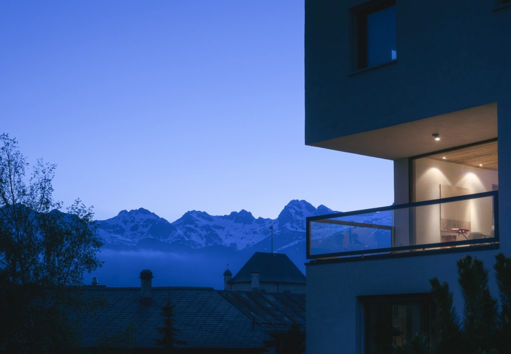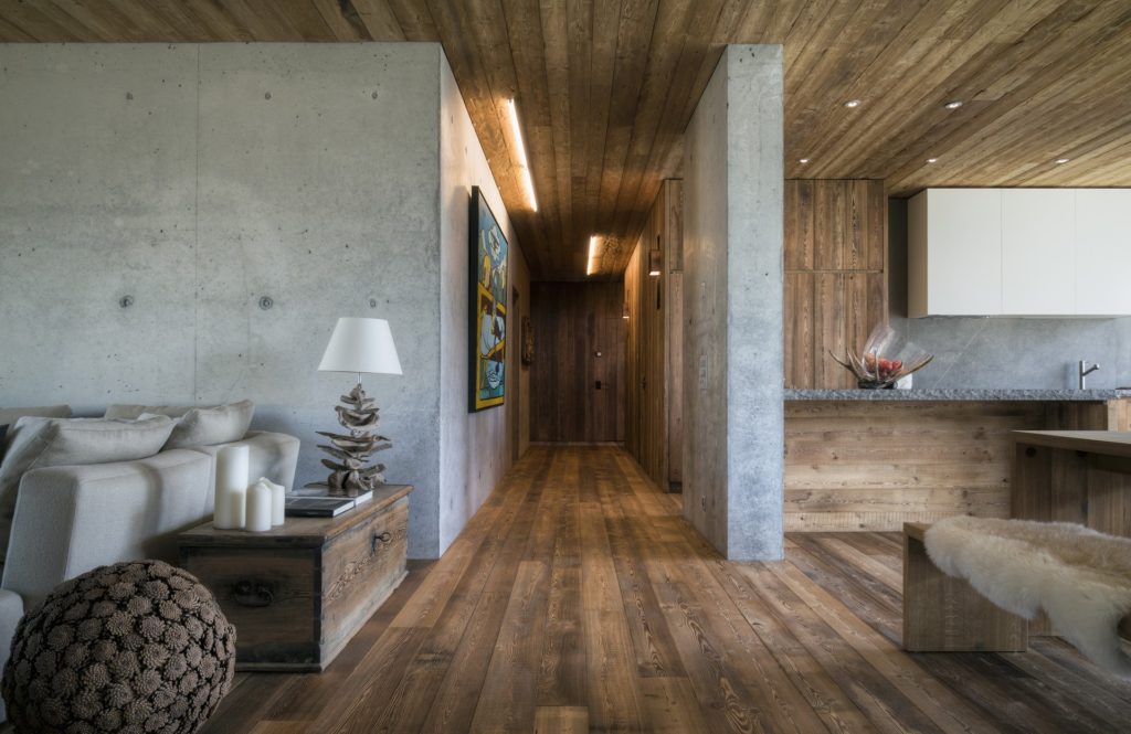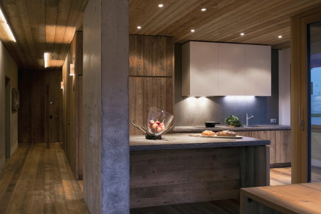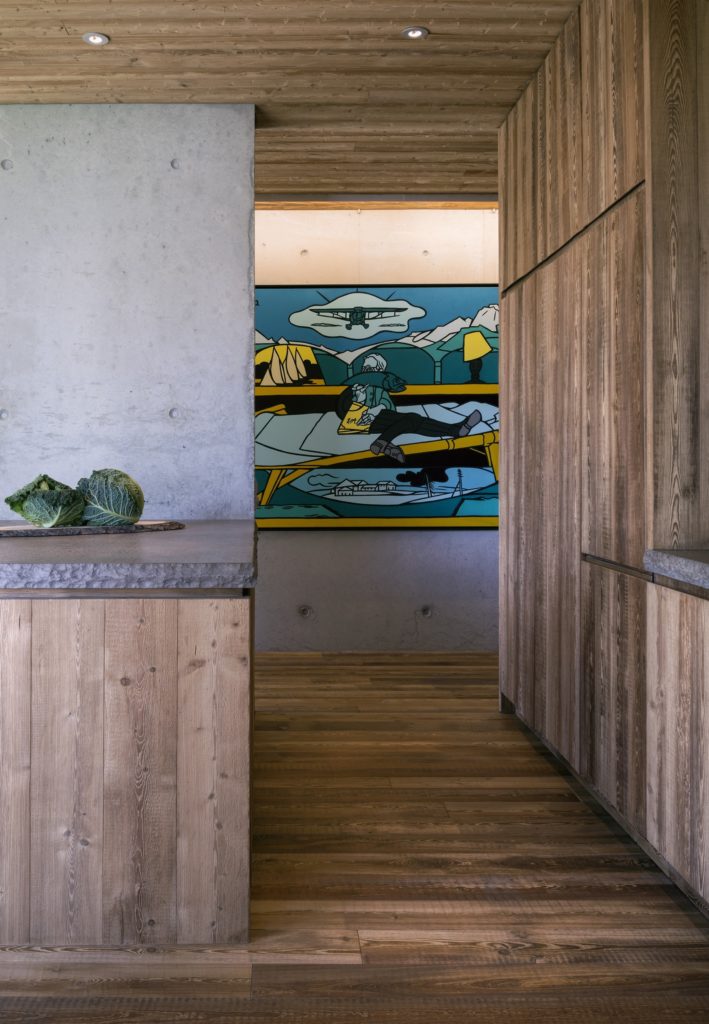 Pontesinában, gyönyörű hegyek közt fekszik ez a pompás, rusztikusan tiszta lakás. A hegyes-völgyes Berninára és az erdőkre tekintő, lélegzetelállító látványra pedig fantasztikus lehet minden reggel felkelni.