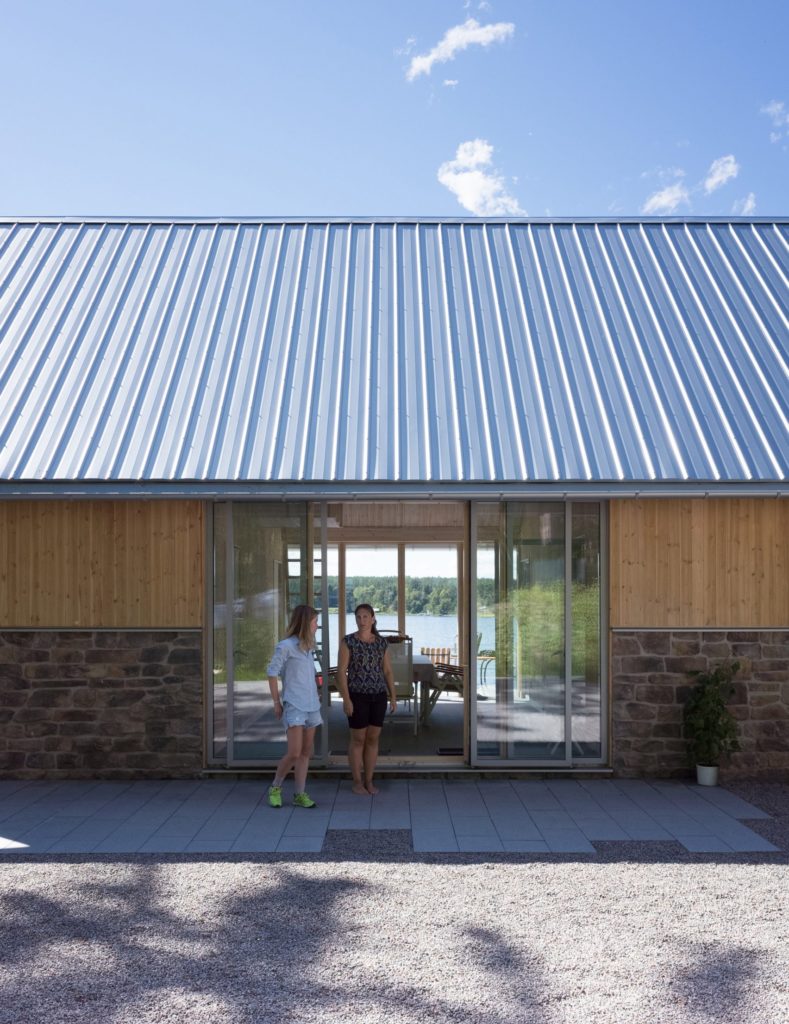 A tolható üvegajtókkal a tervezők szoros kapcsolatot szerettek volna kialakítani a ház és a táj között: a szikrázó napsütés és a lenyűgöző Balti-tenger olyan, mintha a ház bútoraihoz tartozna.