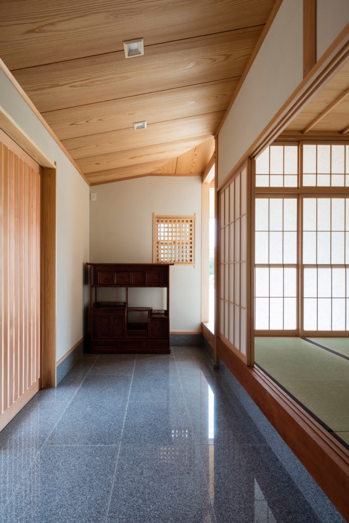 Ehime prefektúrában, Hiiragiban építették ezt az U alakú házat és hát japánabb tervezést nemigen kell keresni. Geometrikus formák, lapos és minimál bútorozás, fehér és fa pavilonok, tiszta, tágas terek szentélye ez a ház.