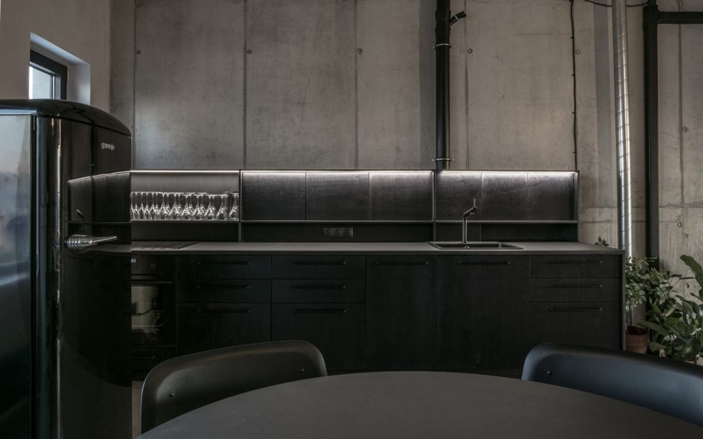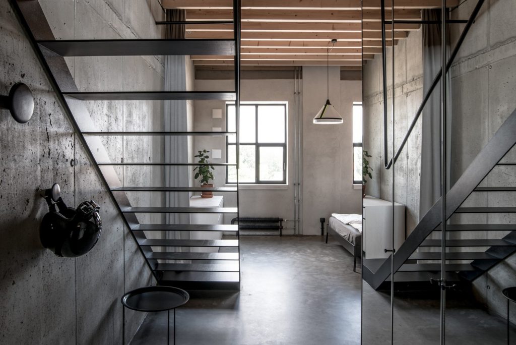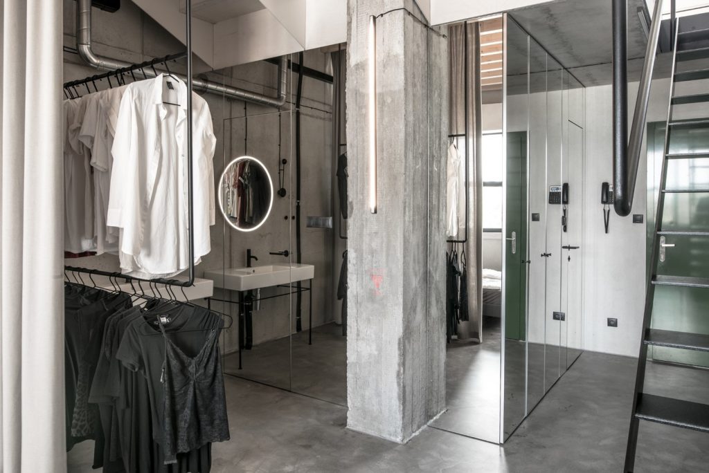 A 73 négyzetméteres szlovák lakásban uralkodik a nyers, kortárs és brutalista stílus: látszóbeton-felületek, fekete-fehér alappaletta, egy-két jól elhelyezett absztrakt műalkotás, sztendereken lógó monokróm ruhák, a padlóban gépfegyverek. Szerintünk erősen John Wick-matéria.