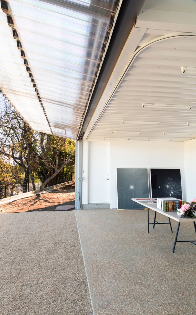 Az 1930-ban épült épületet megújították, hogy alkotóstúdió lehessen; az áttetsző panelekkel még rossz idő esetén is kiválóak a fényviszonyok – jó időben pedig az épület fölötti, csinosan kicsempézett teraszon is megpihenhet az alkotó.