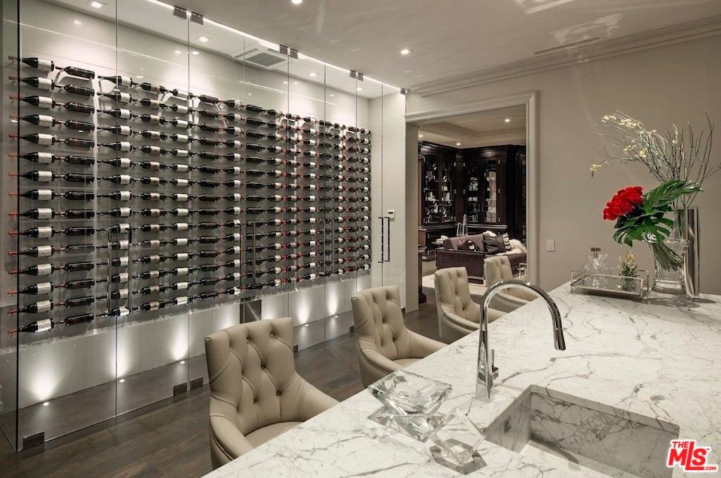 225 palack bor fér el benne és egy üvegajtó védi a borokat attól, hogy Mayweather leverje őket, ha éppen arrafelé dülöngél.