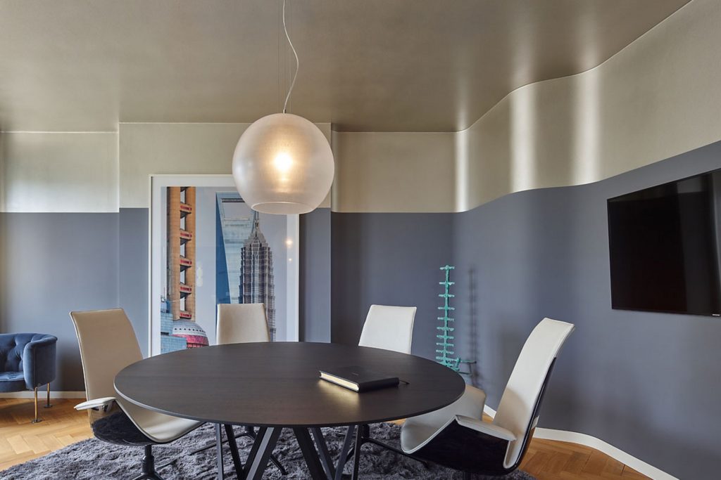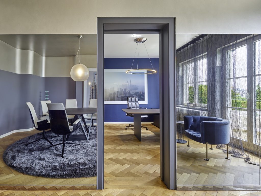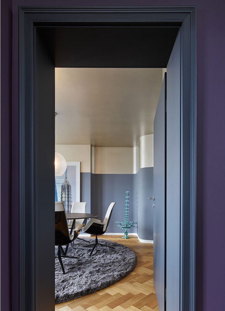 Ez a feszes eleganciájú, de mégsem rideg német ház egyszerre otthon és iroda, nem pedig két elszeparált helyiség. A formális és a családias légkör mind száz százalékosan jelen van az eredetileg kávépörkölő üzemből lakóházzá alakított kräherwaldi rezidenciában – a kékes, nyugodt színekkel operáló terekhez mind a gyerekzsivajt, a baráti vacsikat és a komoly üzleti tárgyalásokat egyaránt hozzá tudjuk képzelni.