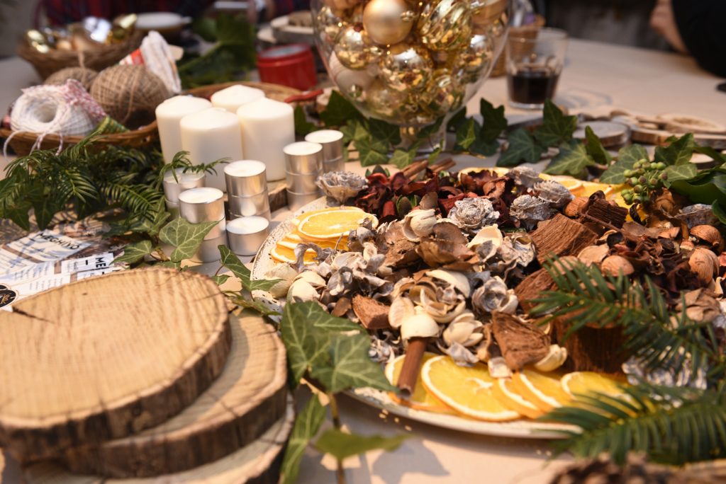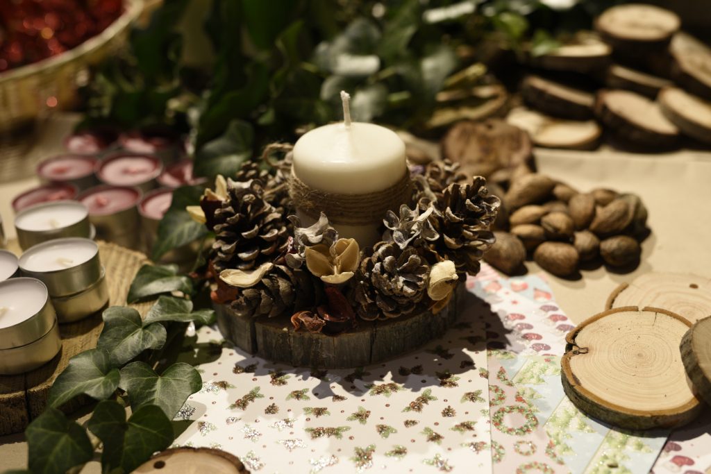 Asztali díszek, adventi koszorúk fakorongból