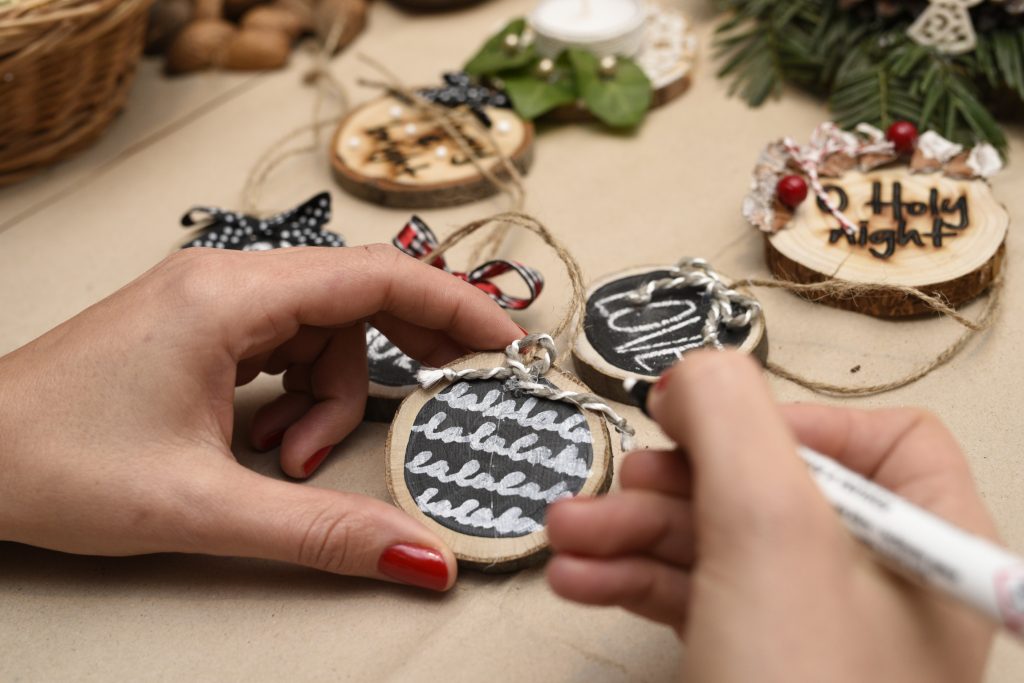 Egyedi karácsonyfadíszek fakorongokból