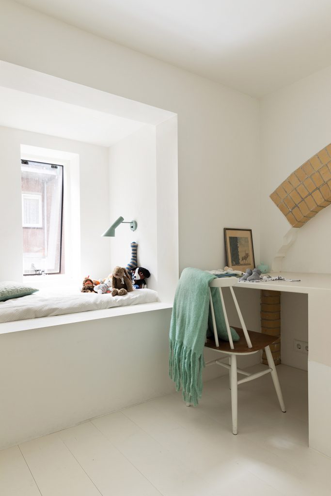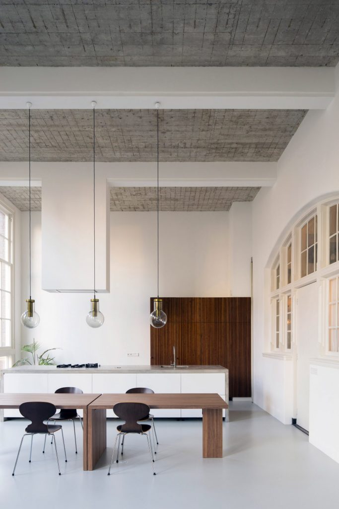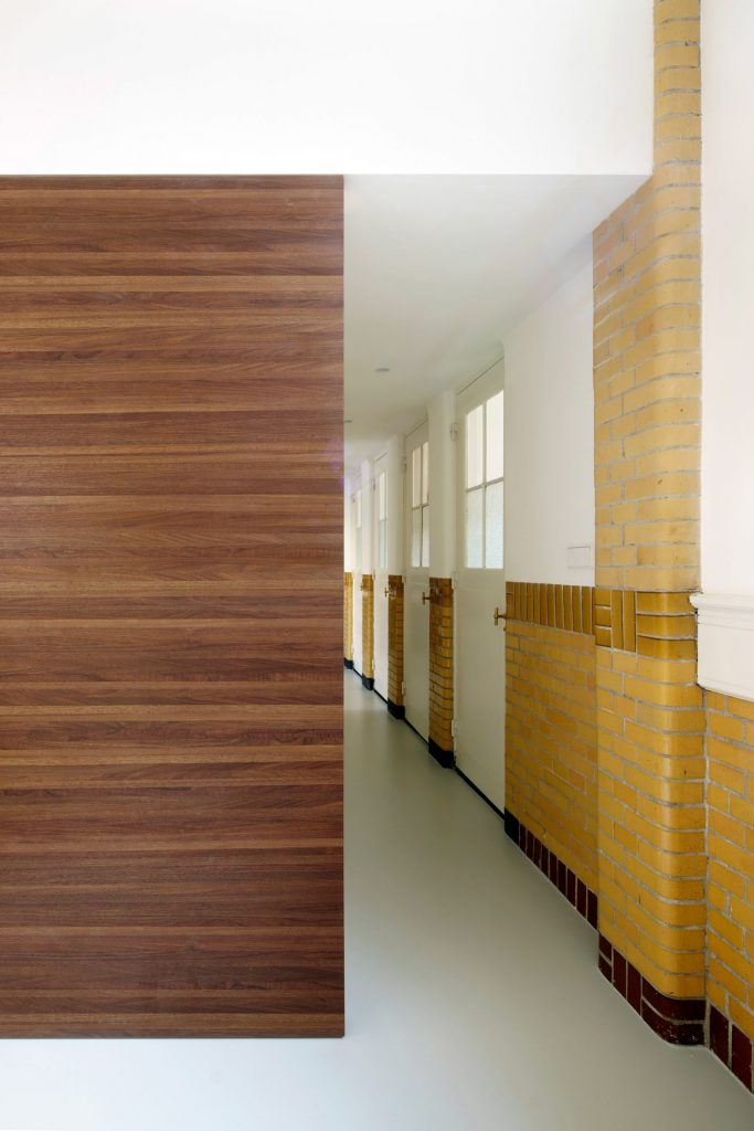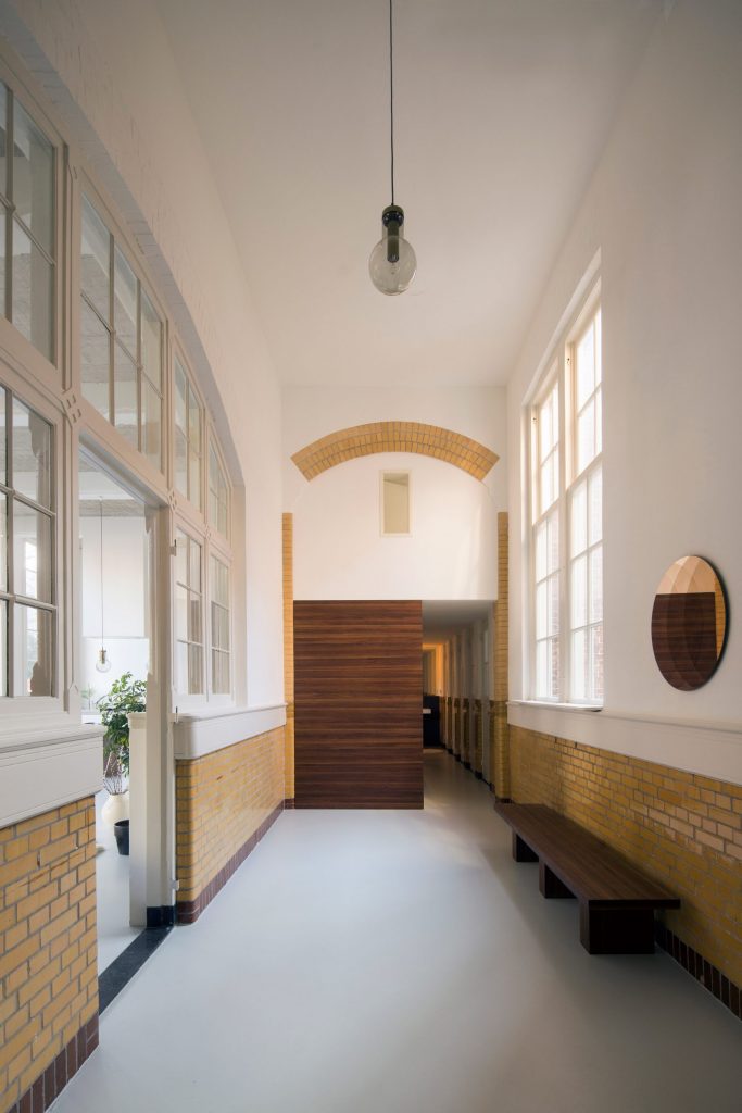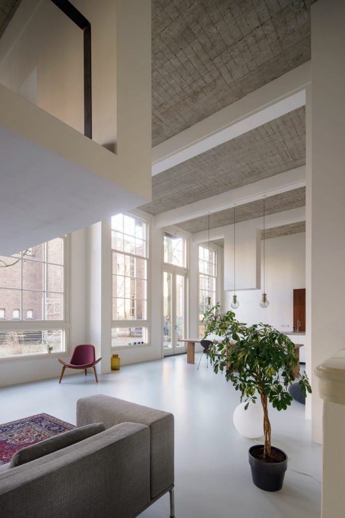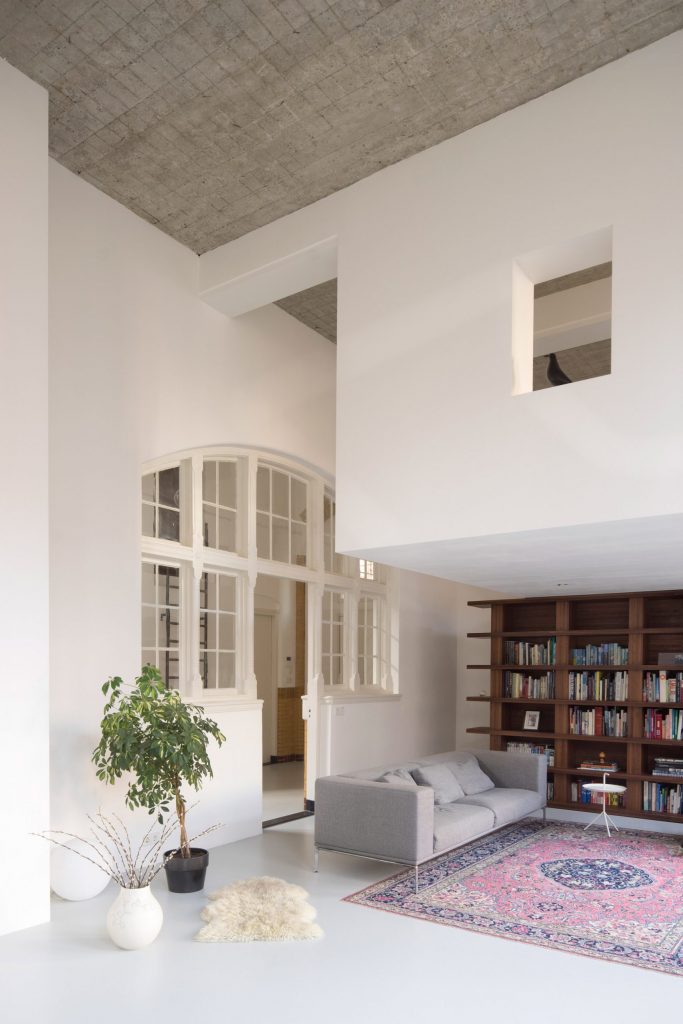 A holland épület 1912-ben épült, majd miután már évtizedek óta nem működött iskolaként, magánbefektetők hat loftlakást alakítottak ki benne. A suli eredeti jellegének megtartása mellett az építészek ügyesen keverték az indusztriális, nyersebb betonelemeket és dizájnbútorokat, lámpákat a melegséget sugárzó fával, a keleties szőnyegekkel.