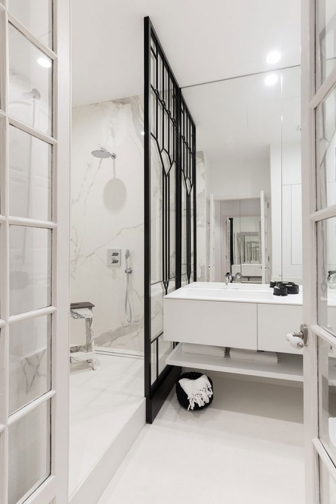 Barcelona belvárosában található lakás belső terét szigorú kialakítás és tiszta vonalak jellemzik - csak fehér és fekete tónusok, minimalista bútorok határozzák meg az enteriőrt. Ugyanakkor a falak megőrizték a modernizmus korabeli épület főbb jegyeit: hatalmas ablakok, íves ajtók és magas beltér uralja ezt a csodálatos, egyedi lakást.