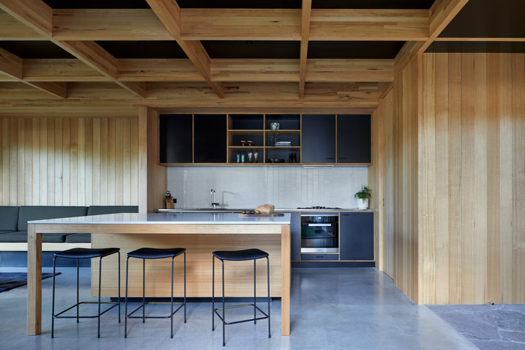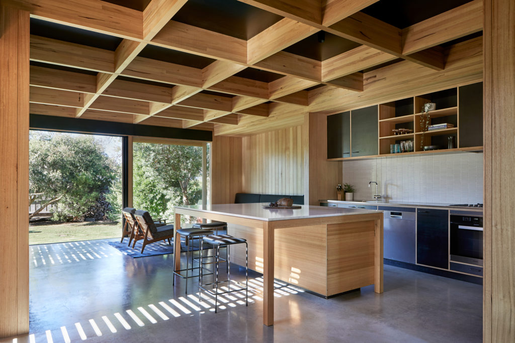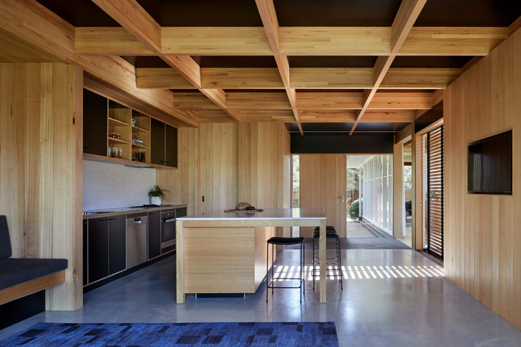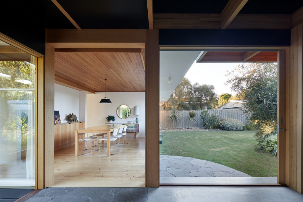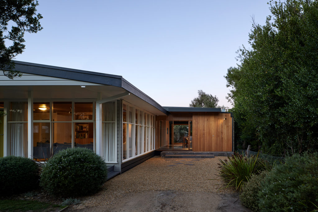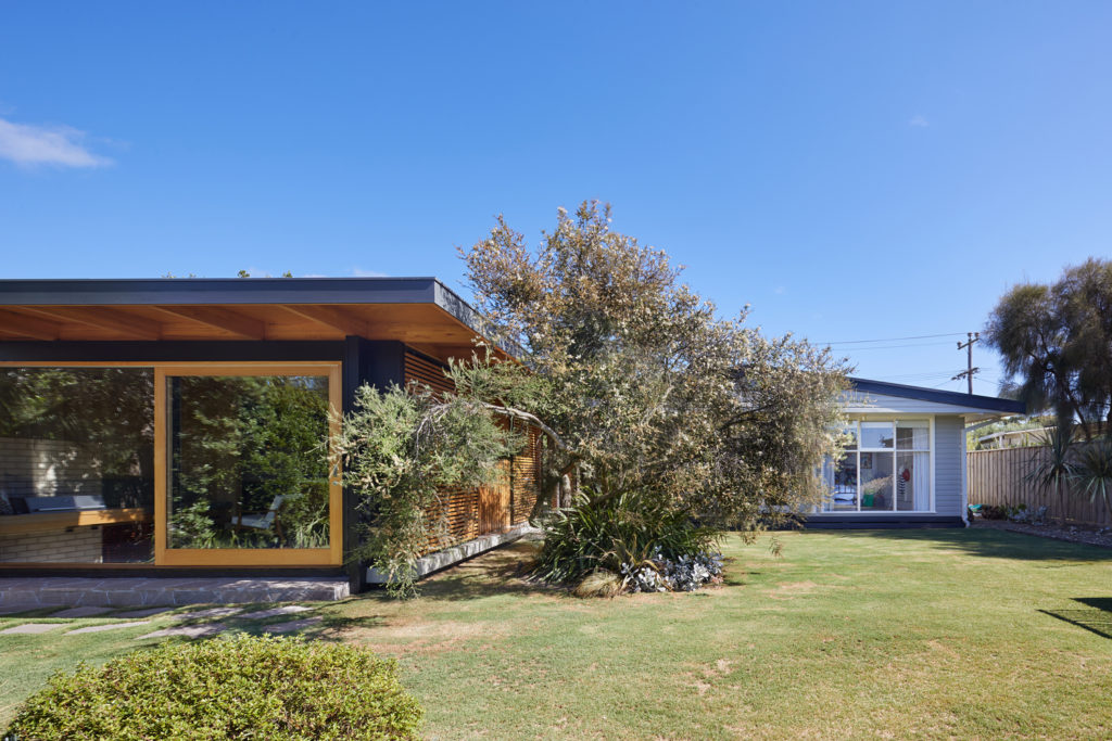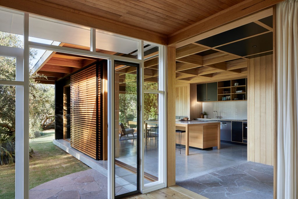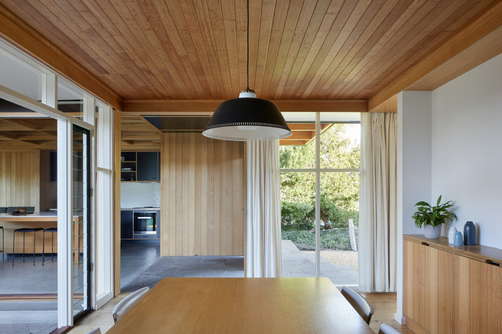 A hatvanas években épült a ház, de a tavalyi évben teljes felújításon és modernizáláson esett át. A fapanelekkel remekül kontrollálhatják a lakók, mennyi napfényt szeretnének beengedni, az ízlésesen bútorozott szobákban pedig garantált a meghittség. Már nézni is nyugtató.