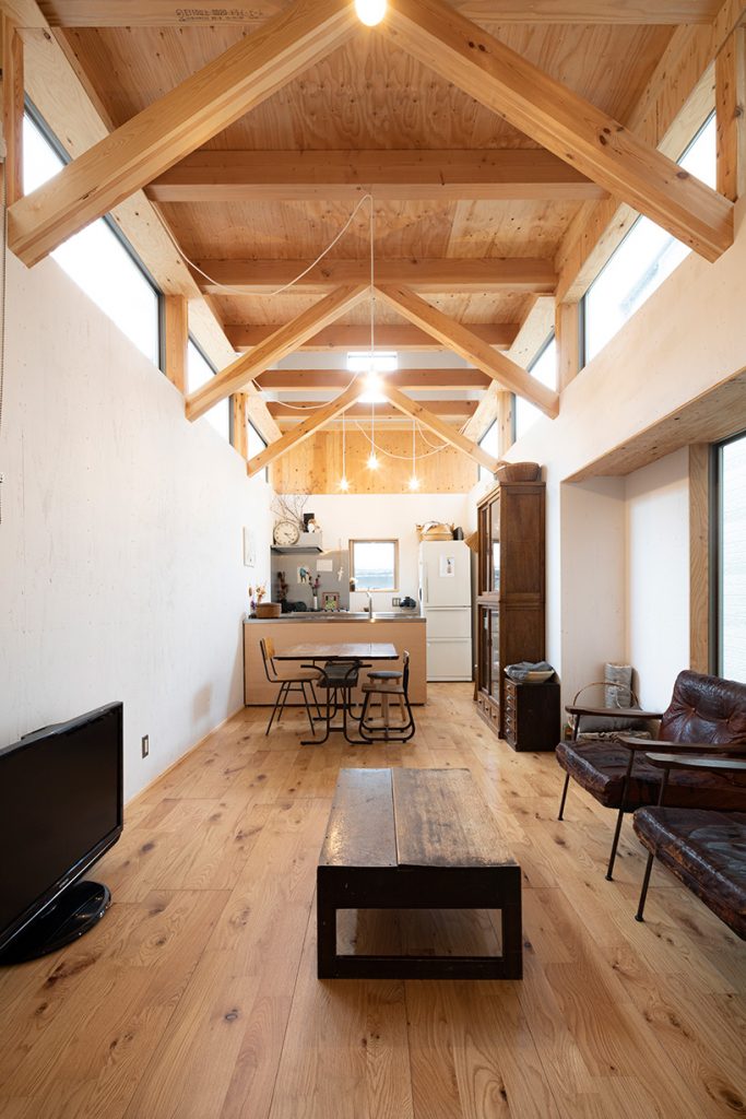 Oszakában helyi építészek kapták a feladatot, hogy két nagy lakóépület közé tervezzenek egy kicsit, mivel csak olyan fér el. A végeredmény egy 4,2 méter széles, közel száz négyzetméter alapterületű sátortetős ház, amely nemcsak lakásként, hanem grafikai stúdióként is funkcionál.