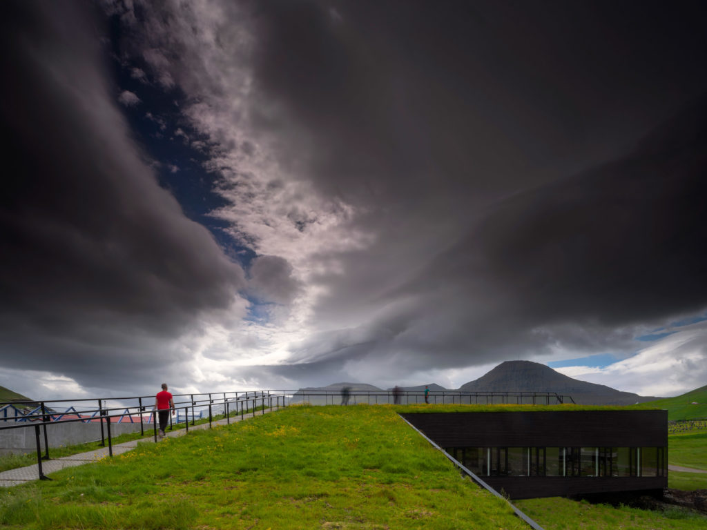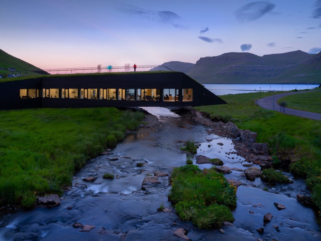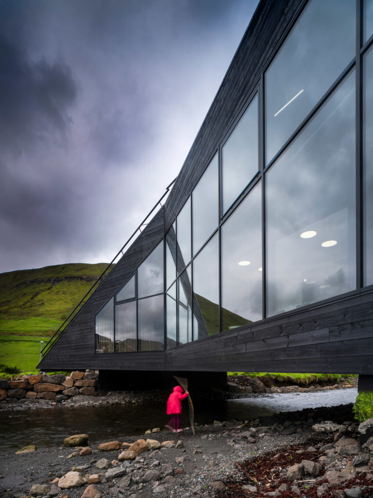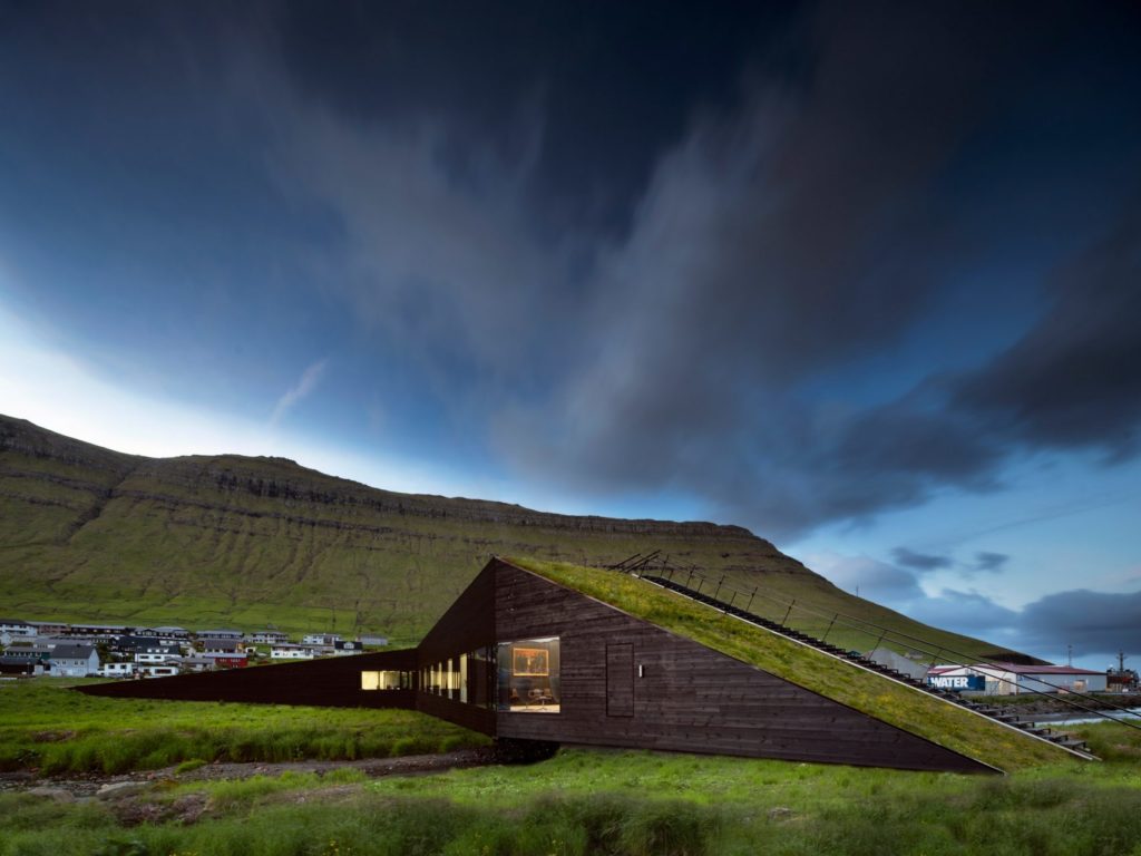 Ha Magyarországon városházára gondolunk, valami fehérre vakolt épület jut eszünkbe a főtéren, ablakaiban obligát muskátlival, a címer fölött magyar zászlóval. Na ez a Feröer-szigeteken épült hídház nem ilyen: látványos, modern és megkapó épület, mely a 2009-ben egyesült Leirvík és Gøta községeket köti össze szimbolikus és konkrét hídként. A városházában tartják mindkét község fontos eseményeit, a gyalogosok pedig a városháza tetején kialakított, zöld úton kelhetnek át a patakon.