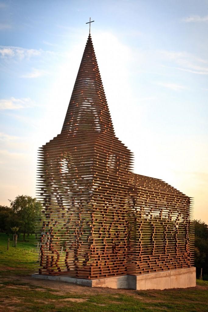 Egy belga építész páros alkotta meg ezt a nem éppen szokványos acéltemplomot, aminek falain át lehet látni.
