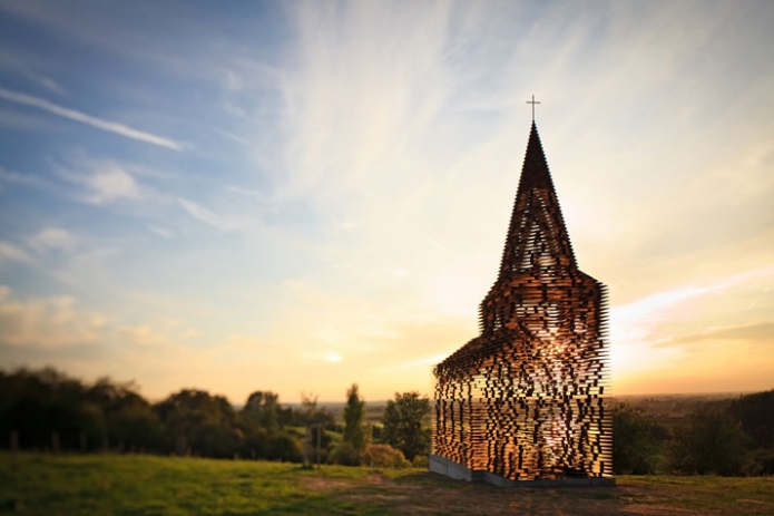 Ez a betonalapra 30 tonna acélból felhúzott templom, valójában nem is épület, igazából szoborként vagy installációként fogható fel. Mindenesetre Pieterjan Gijs és Arnout Van Vaerenbergh alkotása rendkívül különleges.