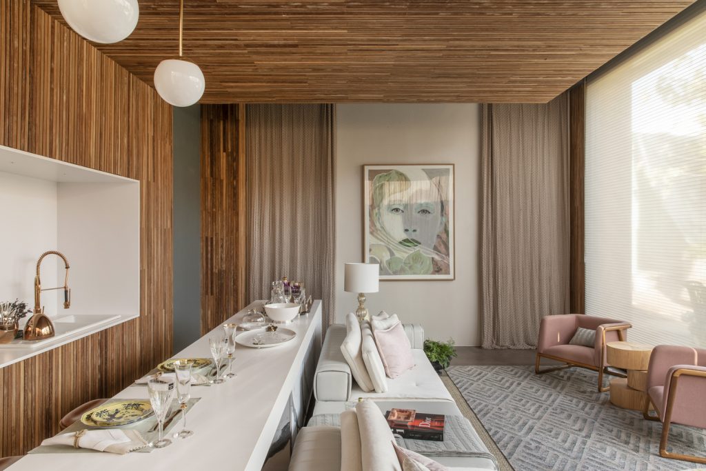 A stílusos ház csupán hatvan négyzetméteres, de egészen kreatív megoldásokkal van tele. A modern hangulat tökéletesen keveredik a nemesibb kiegészítőkkel és a lágyabb, femininebb színekkel és berendezési tárgyakkal. Nagyon tetszős.