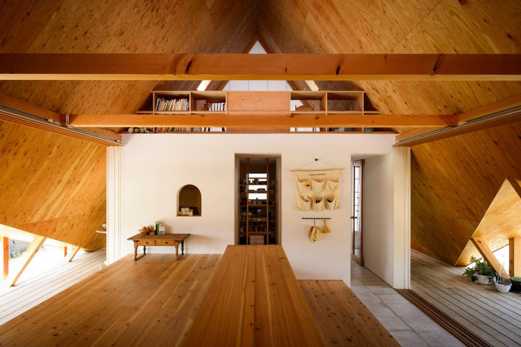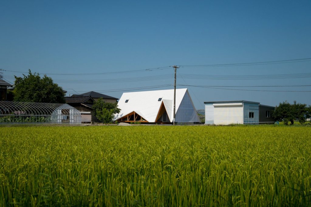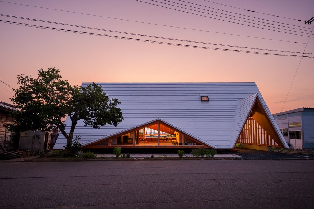 Nagauka faluban épült ez a különleges, sátor alakú ház, melyben a japán minimalizmus találkozik a modern geometrikus építészettel és valami Miyazaki-mesés hangulattal. Jó találkozás. Nagyon jó.