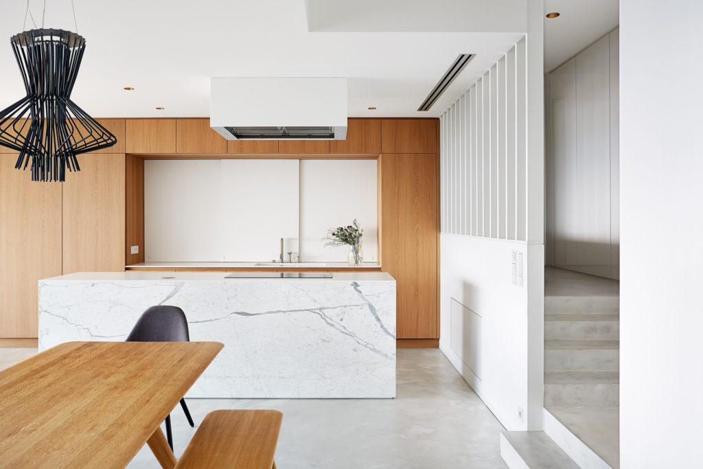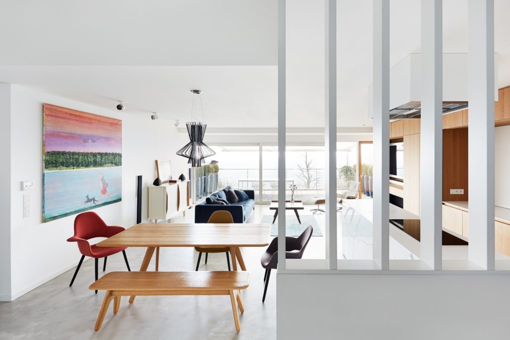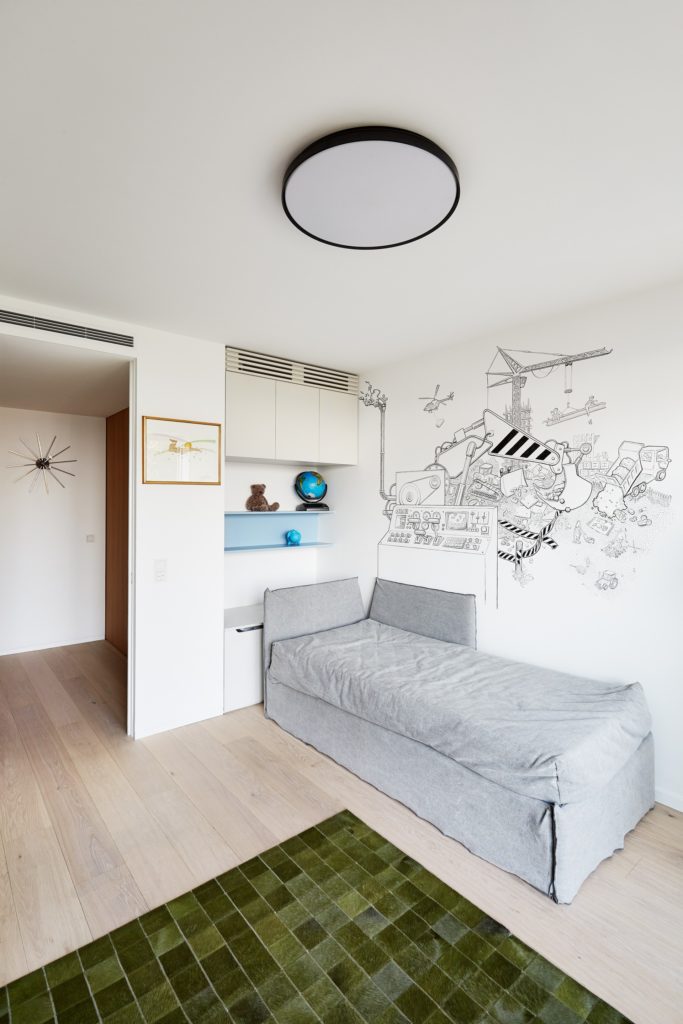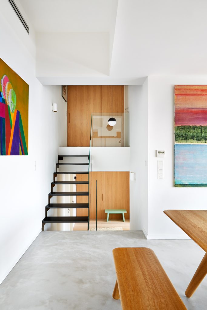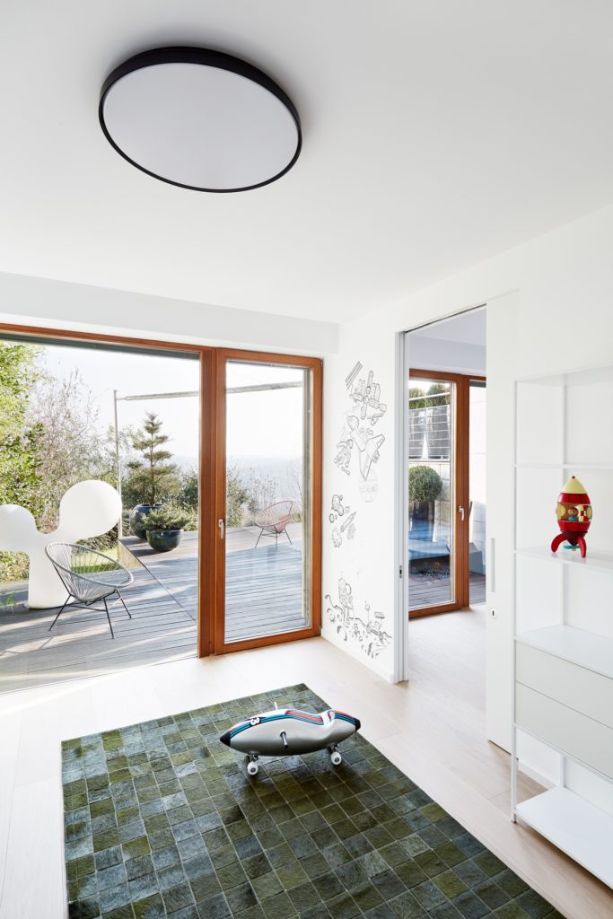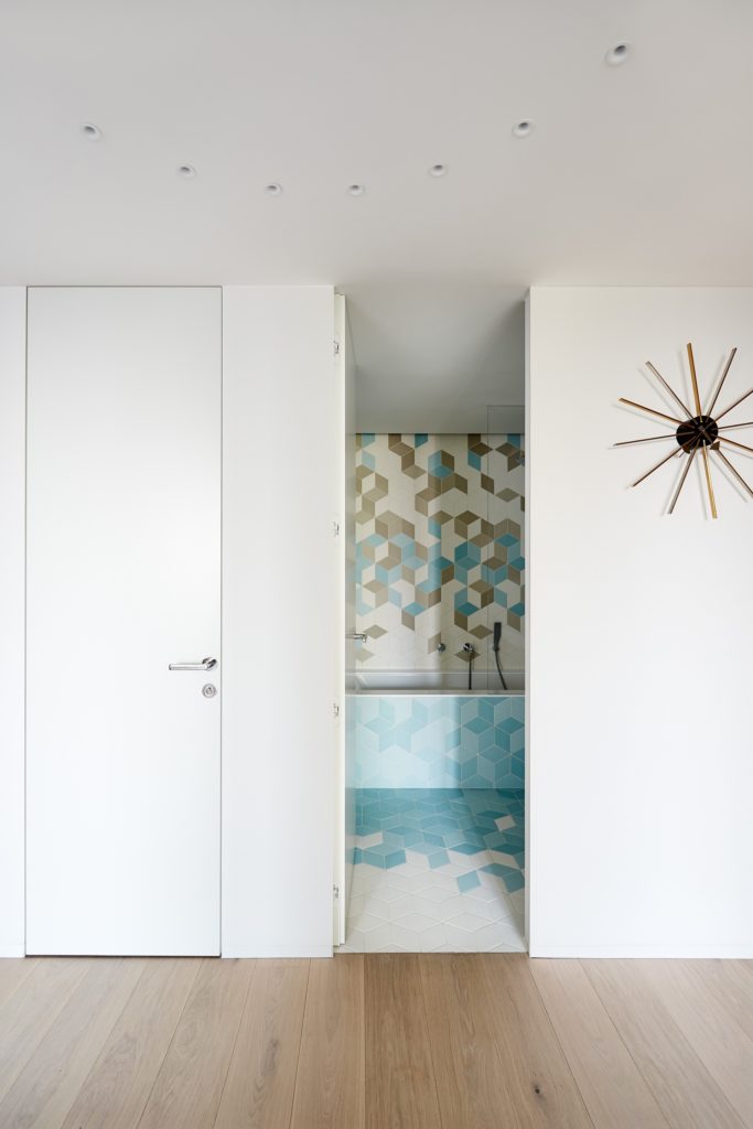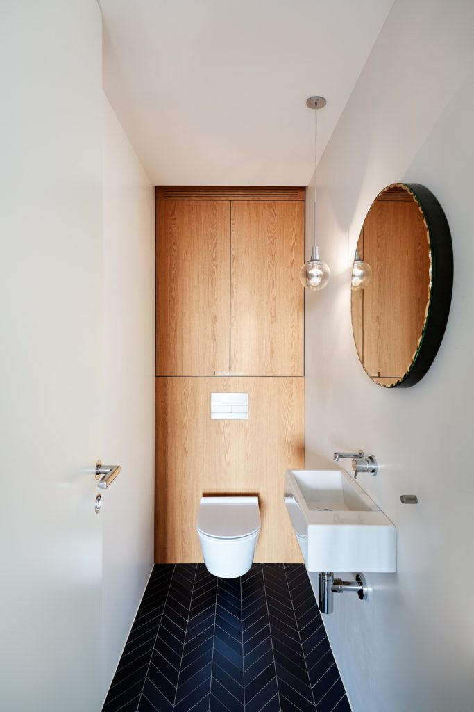Minden emelet egy külön karakter: az életterek csupán a letisztult, nem csicsázott és egyszerű formákkal operál, a szobák feketék, fehérek és pasztellszínűek. A tölgyfa részletek és a méhsejtfal-mintás fürdőszobacsempe külön nagy királyság. Na meg persze az a terasz. Az a terasz…