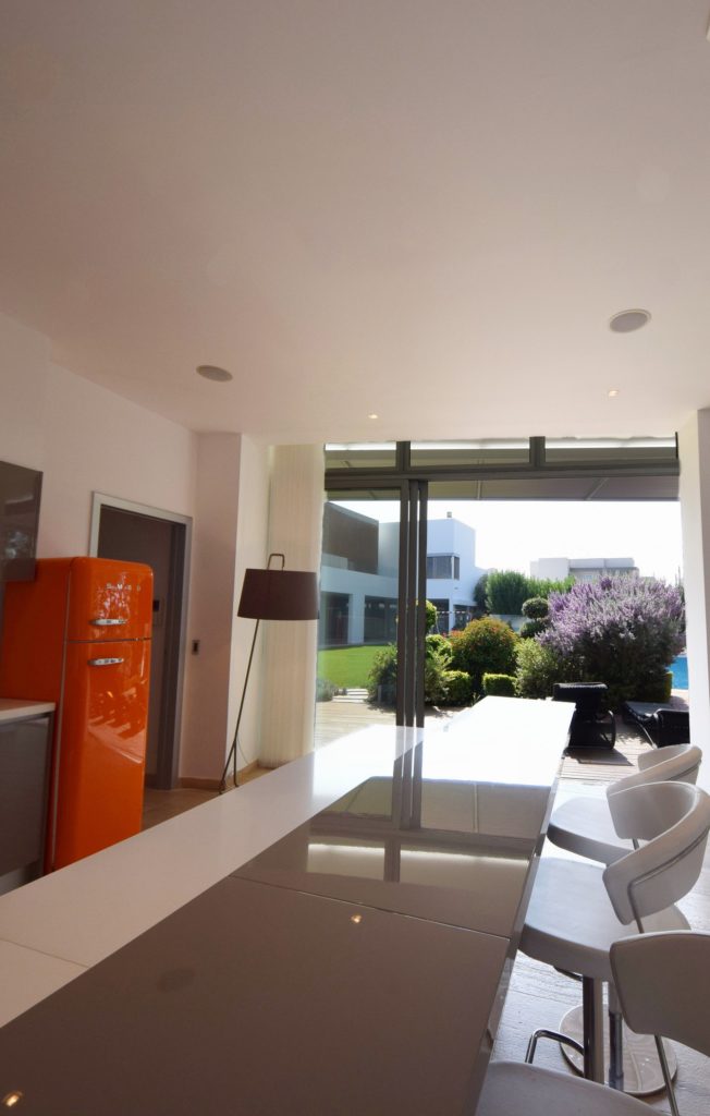 Nicosiában, Ciprus fővárosában áll ez a csodás ház, amit könnyen nézhetnénk művháztól kezdve sokcsillagos nyaralón át wellness központig, de igazából egy család magánrezidenciája. Nehéz kiemelni, hogy vajon a csinos medence, a napozóterasszal egybeolvadó, elegáns nappali vagy épp az éjszakai fényekben pazarul szép kültéri folyosó lenne a legszebb része, úgyhogy nem is emelünk ki semmit a csodás egységből, hanem megmutatjuk a nagy egészet.