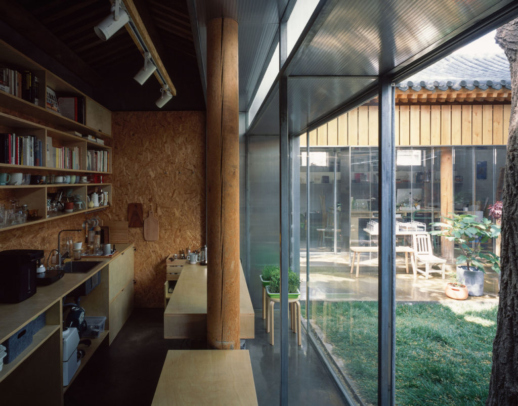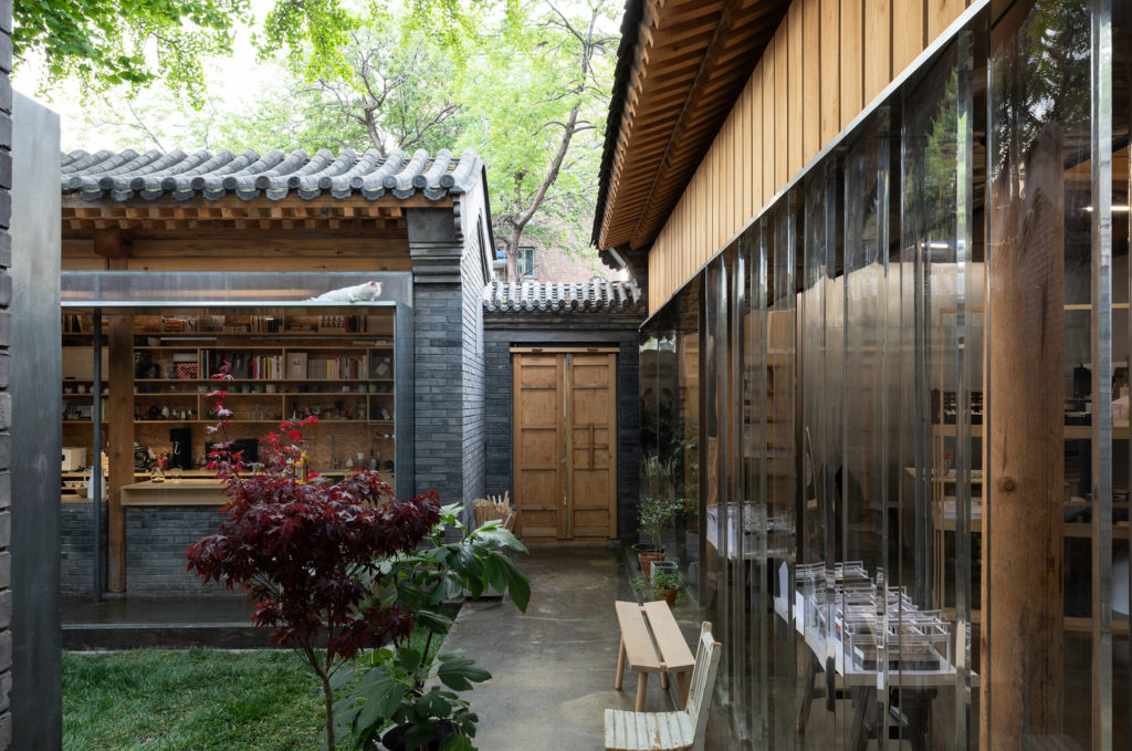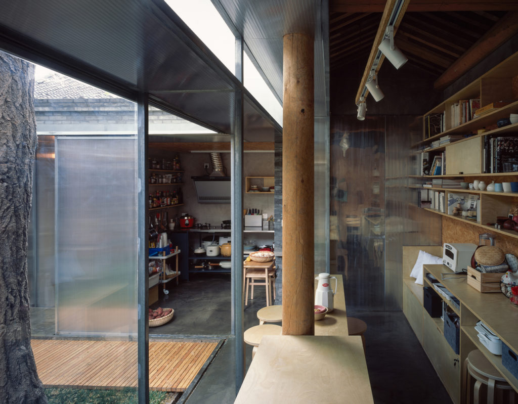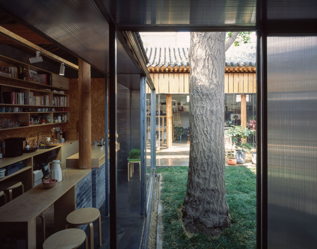 Gyönyörűen régi tető és ugyanilyen szépen új konstrukció alatta: ez a kínai házegyüttes a MINOR LAB nevet kapta és általában 4-6 társulás tart itt workshopokat vagy használja más kreatív platformként a helyet. Kreatív közösségi tér és keleti letisztultság a garázsbútorok hangulatával maxra járatva.