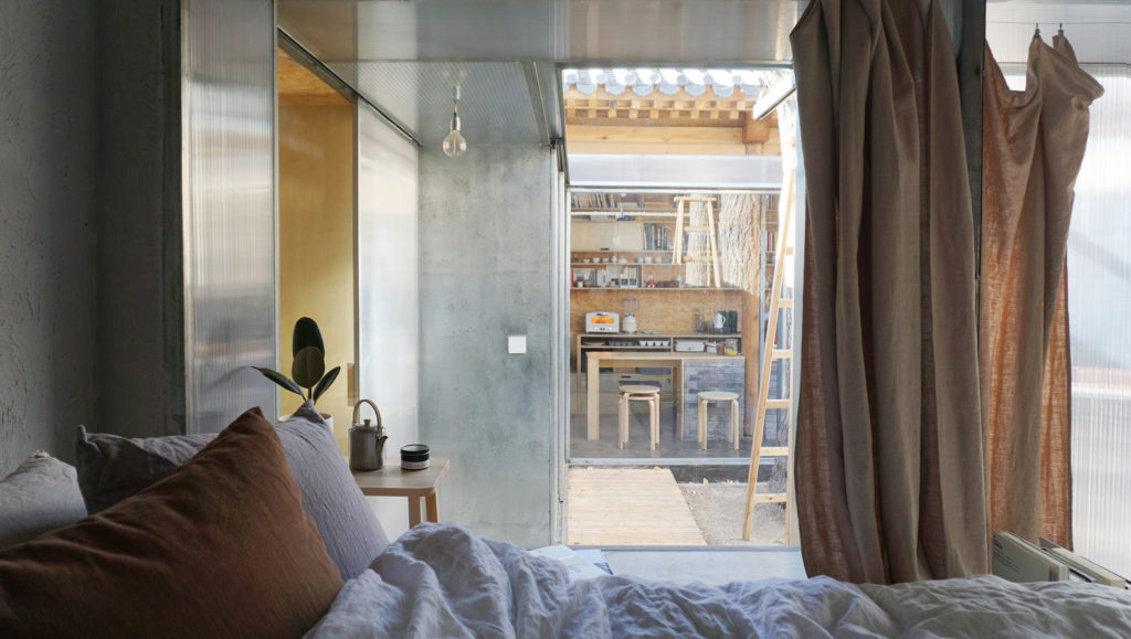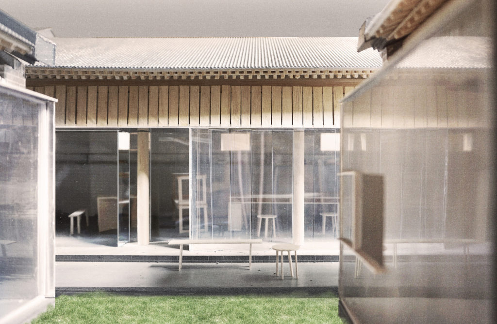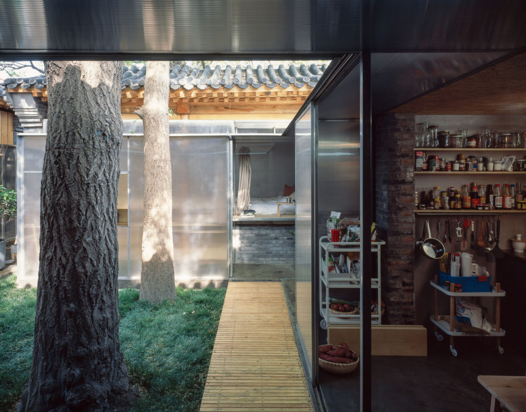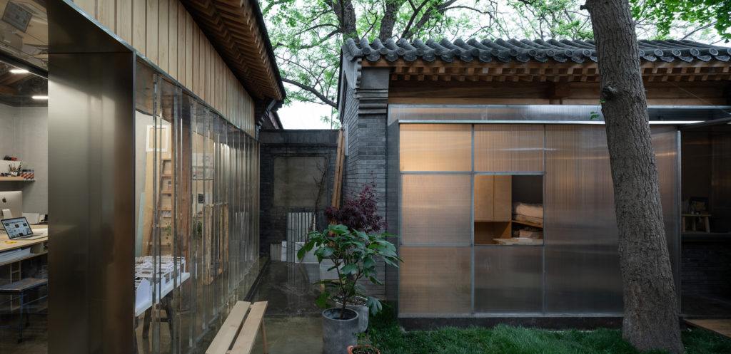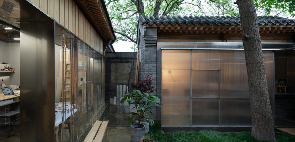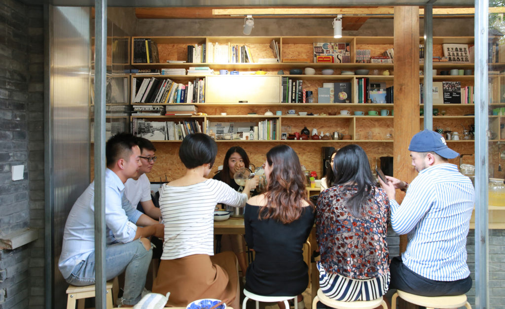 Gyönyörűen régi tető és ugyanilyen szépen új konstrukció alatta: ez a kínai házegyüttes a MINOR LAB nevet kapta és általában 4-6 társulás tart itt workshopokat vagy használja más kreatív platformként a helyet. Kreatív közösségi tér és keleti letisztultság a garázsbútorok hangulatával maxra járatva.