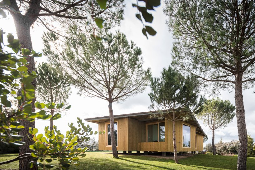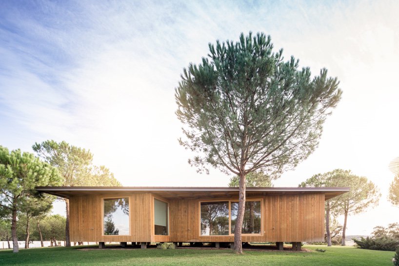 A 436 négyzetméteres területre épített, 150 négyzetméteres ház a már létező épület pavilonos megtoldása és kifejezetten kisvonatos-olvasószobás-elvonulós helyként készült. Elég menő.
