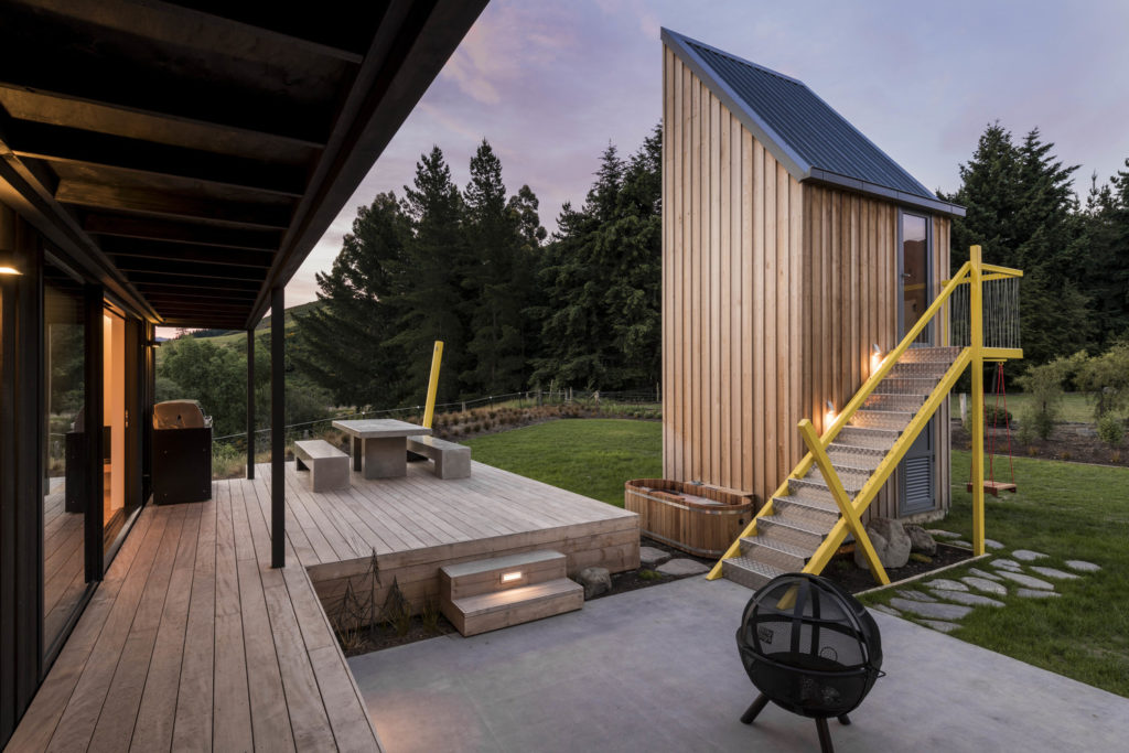 126 négyzetméteren keveredik a modern, a retró, a kemping-feeling és a kortárs tervezés legjava ebben a Hammer Springs-i házegyüttesben. Nagyon meghitt terek, elképzelünk itt pár éjszakába nyúló mókázást a teraszon.