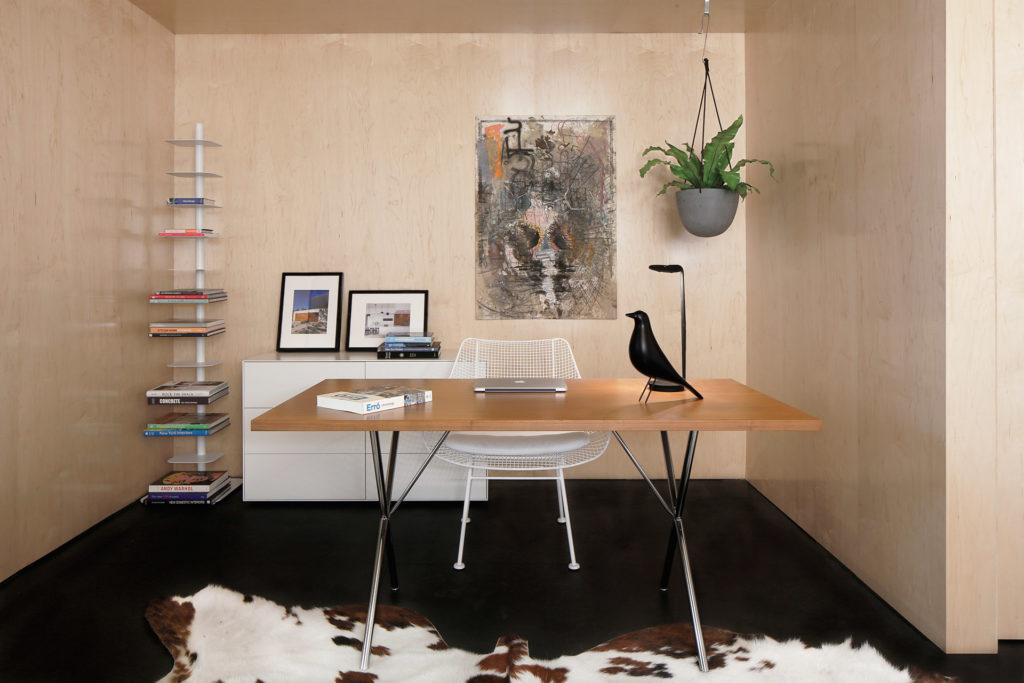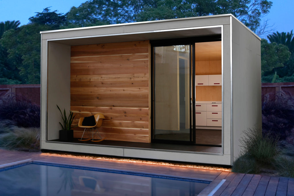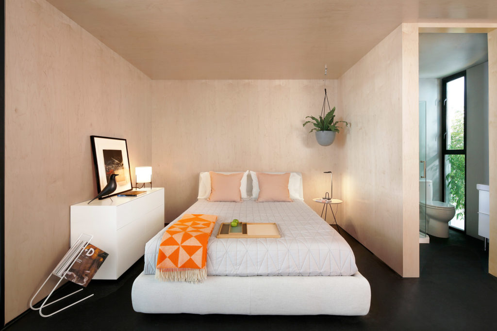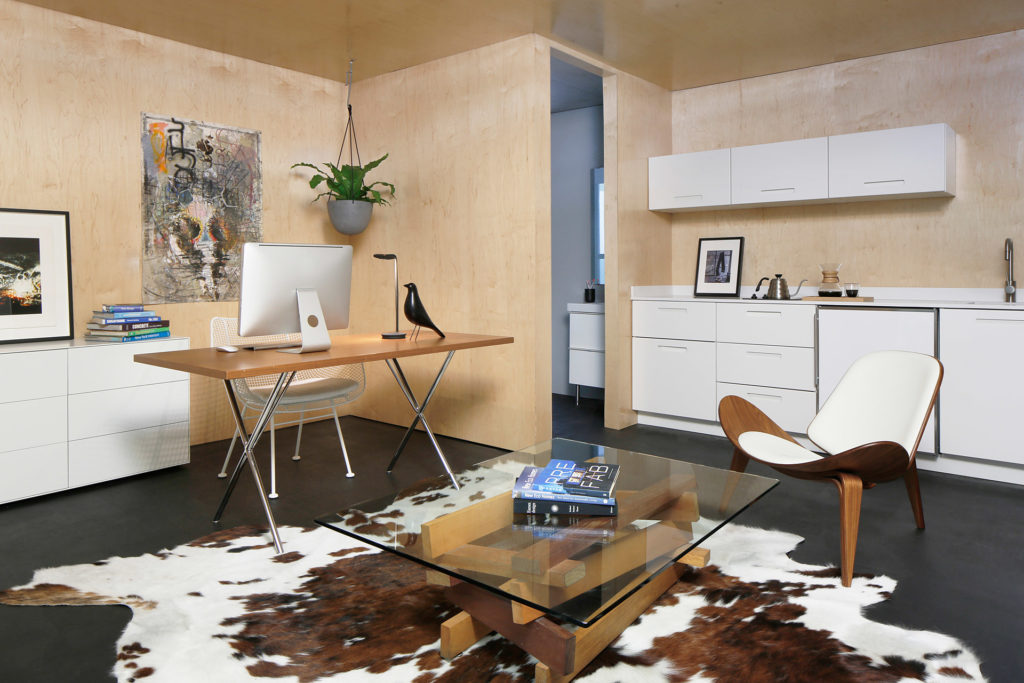 Ez az építmény egyébként úgy első beütésére tényleg olyan, mint egy hatalmas, szürke doboz, amely az égből egyszer csak lepottyant. Az egyszerű négyszögletes szerkezet fenntartható, energiatakarékos mnmMOD-panelekből épül fel; a fekete alumínium ajtók és ablakok, valamint a juharfával bélelt belső tér remek esztétikai megjelenést kölcsönöz a kabinnak.