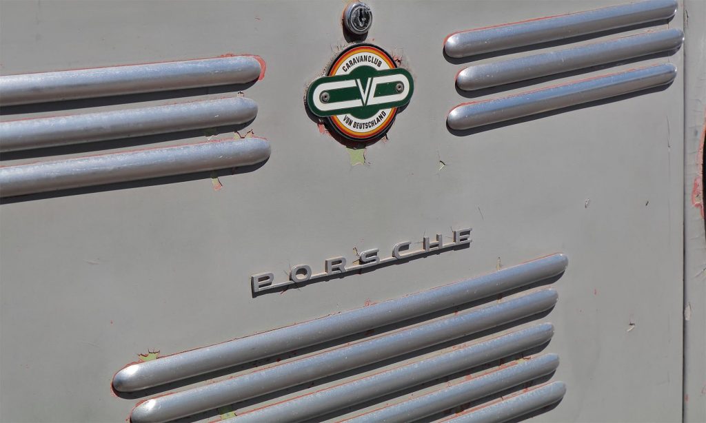 Az ötvenes évek stílusában épült alumínium karosszériás lakóautóra Porsche felirat került,