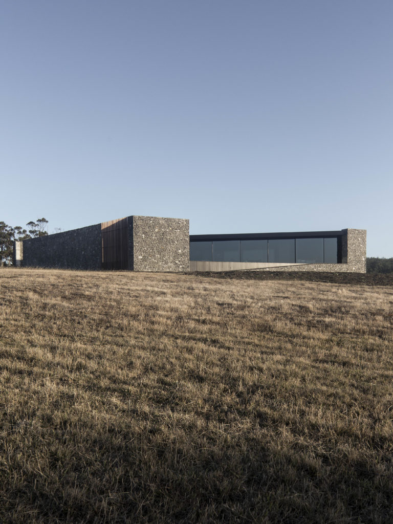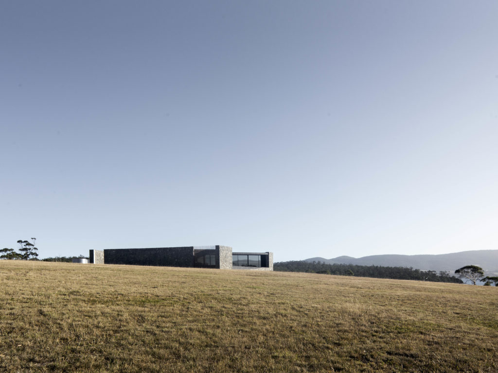 Az Ausztráliához tartozó Bruny-sziget valami egészen csodálatos hely, ez a ház a masszív kőfalaival és a sötét belső terével mégsem ontja magából a lüktető harmóniát és az otthonosságot. A gyönyörű tájat elnézve enyhén stílusidegen, mintha csak a világ egy másik helyén húzták volna fel, majd ide hurcolták volna.