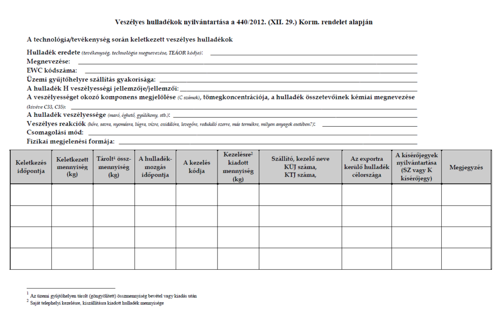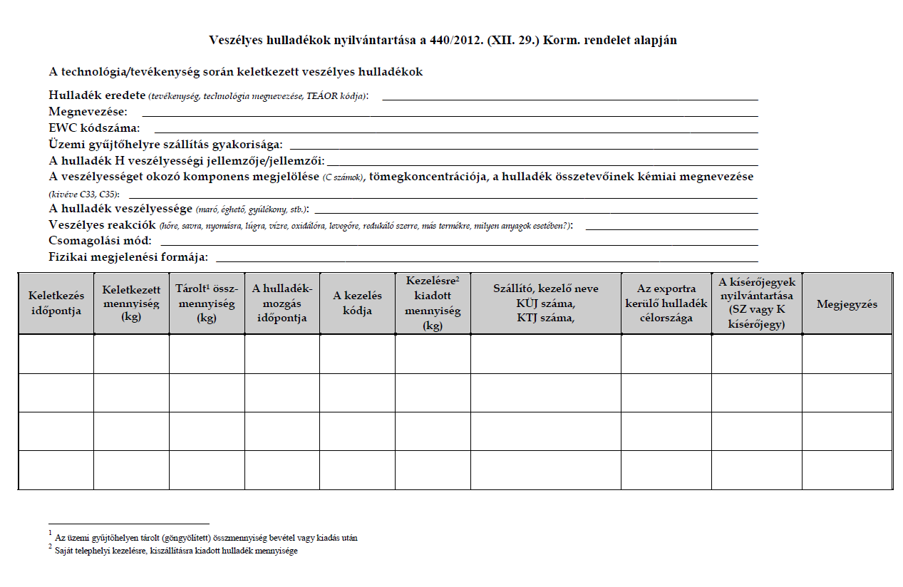 Hulladéknapló - minta (forrás: eusynchronic.hu)