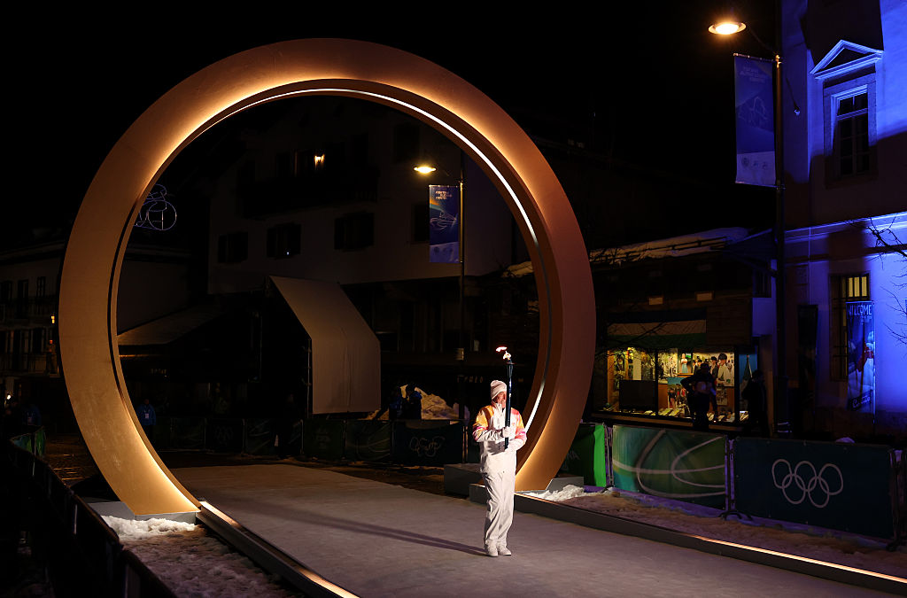 Az est fénypontjaként az olimpiai láng a szánkós és bobos Gerda Weissensteiner, valamint a sífutó Manuela Di Centa kezében megérkezett a milánói Sempione téren lévő Békeívhez, ahol előbb még a gyorskorcsolyázó Enrico Fabris vitte tovább a fáklyát. Végül az egyaránt háromszoros olimpiai bajnok alpesi síző, Alberto Tomba és Deborah Compagnoni emelkedett a magasba, hogy a Békeív közepén lévő koszorút meggyújtsa. Cortinában Gustav Thöni alpesi síző vitte utolsó előttiként a lángot, melyet egy jelenleg is aktív sportoló, a női lesiklás phjongcshangi bajnoka, Sofia Goggia gyújtott meg.
