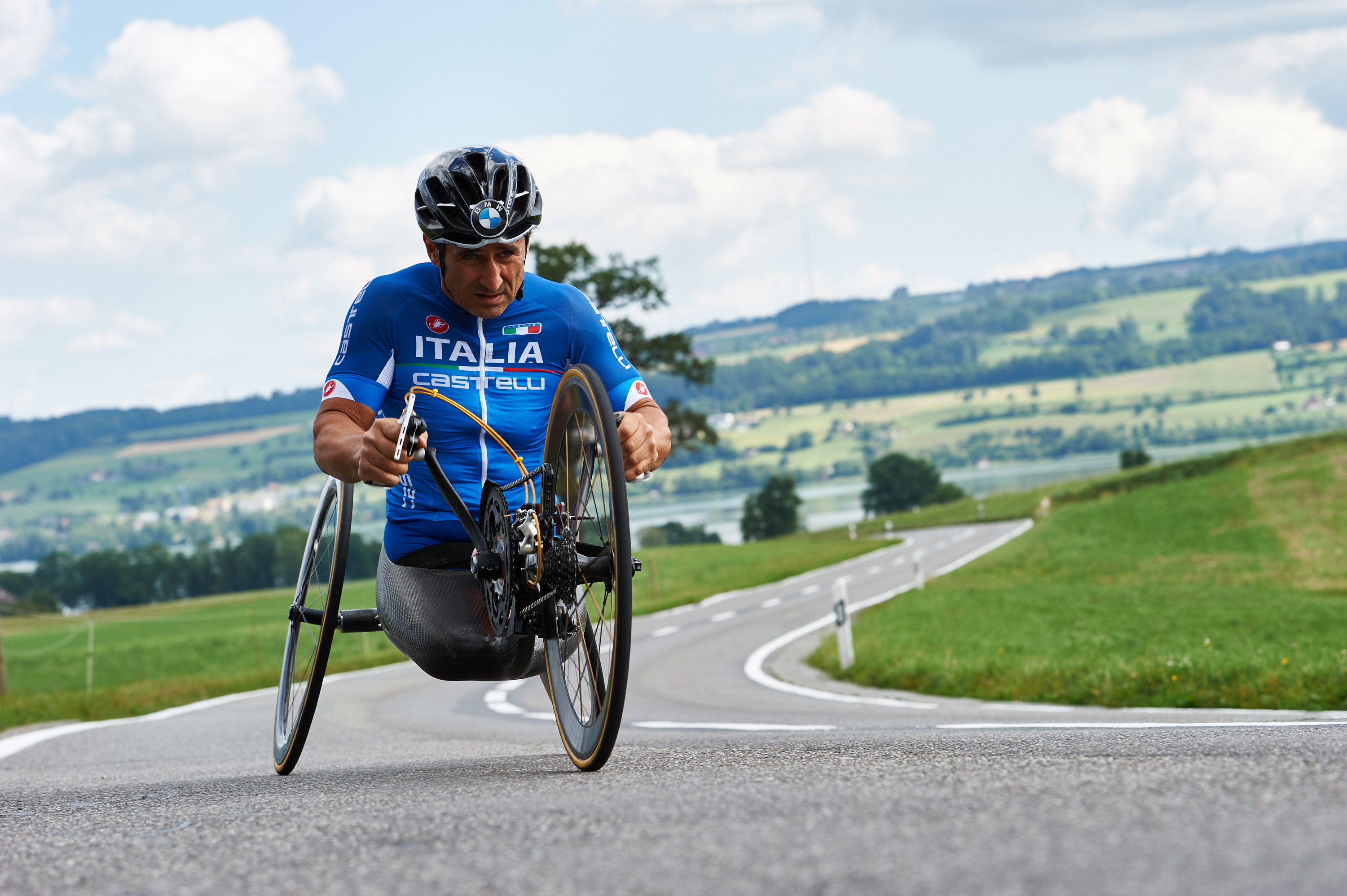 Alex Zanardi korábban autóversenyző volt, az F1-ben is megfordult, de 14 éve egy baleset következtében mindkét lábát elvesztette. Viszont annyira kemény fickó, hogy kézi hajtású kerékpárral nyolc világbajnoki címet is nyert, és a 2012-es londoni paralimpián két egyéni számban aranyérmet szerzett. Tehát nem semmi az ürge, és arról még nem is beszéltünk, hogy kategóriájában számos maratoni győzelmet is behúzott, például megnyerte a hat legrangosabb maratoni verseny egyikét, a New York-it.