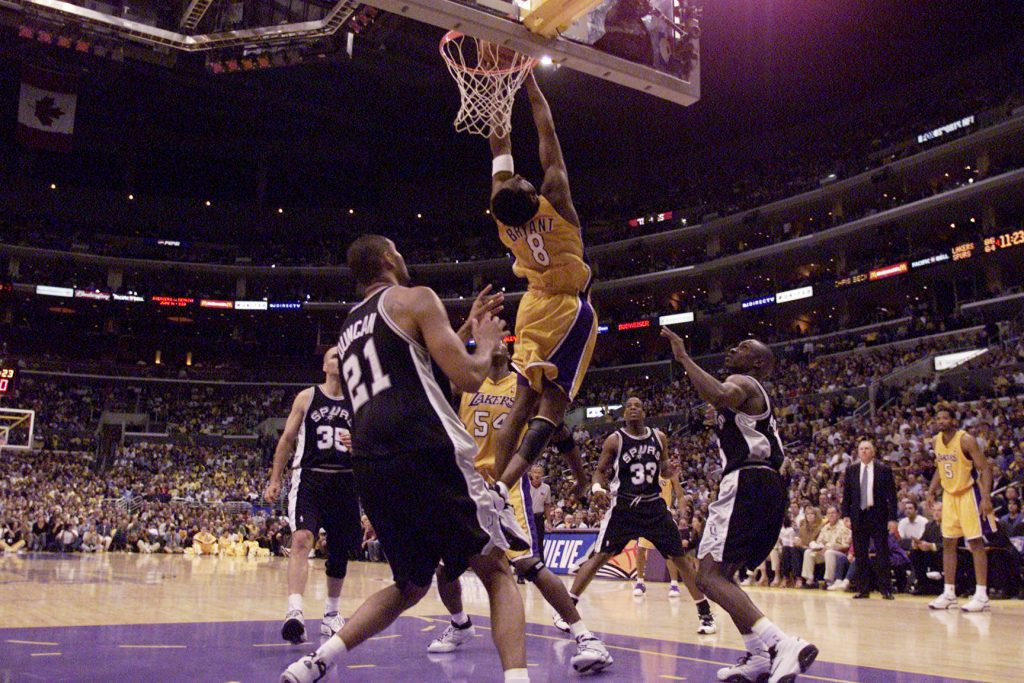 Ötször nyert bajnokságot karrierje során, így a rájátszásban is volt sok emlékezetes meccse, kiemelkedő teljesítménye Bryantnek. Az összeállításunkba a 2001-es San Antonio Spurs elleni Nyugati Konferenciadöntő első meccse került be, amelyen a Fekete Mamba elhomályosította a Lakers akkori első számú játékosát, Shaquille O’Nealt, és győzelemre vezette a Lakerst a 45 pontjával. A San Antonio a párharcban egyetlen meccset sem nyert, a Lakers aztán a döntőben az Iverson vezette Sixerst is magabiztosan legyőzte. Zsinórban ez volt a Lakers második bajnoki címe, és zsinórban a második olyan év, amikor Bryant Shaquille O’Neal mögött a Los Angeles második legfontosabb játékosa volt. A San Antonio elleni első meccs azonban a nyolcas domináns teljesítményéről maradt emlékezetes.