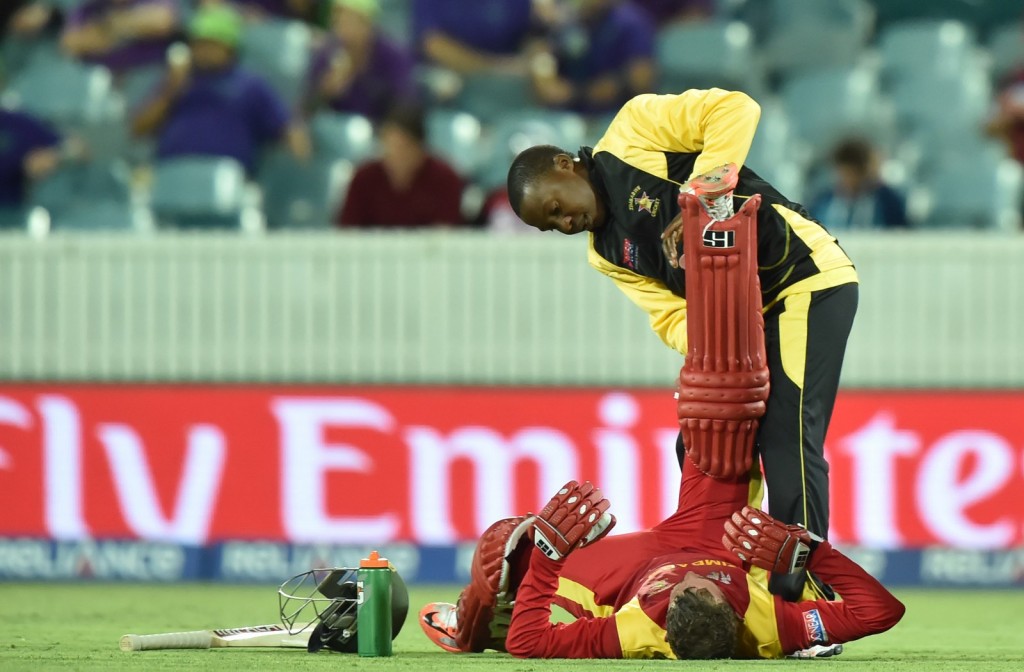 A fenti képen a svéd sífutónő, Charlotte Kalla ugrál örömében, miután vébét nyert 10 km-en. Itt meg a fair play legszebb megnyilvánulása a sportban, a zimbabwei krikettes görcsét húzza ki az ellenfél, a West India játékosa.