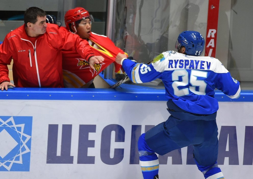 A kazah a Barisz játékosa, a csapat pedig augusztus 8-án a friss KHL-es csapat, a kínai Kunlun ellen játszott. A hokiban nem túl tehetséges, ezért kizárólag verekedő csatár ámokfutásba kezdett már a meccs elején, úgy megütötte Tomás Marcinkót, hogy a pekingiek szlovák légiósát kórházba kellett vinni.