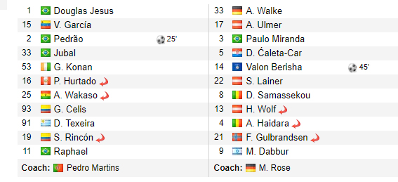 Pedro Martins edző 4 brazil és 2 kolumbiai mellett egy-egy uruguayi, perui, venezuelai, ghánai és elefántcsontparti focistát tett a csapatba.