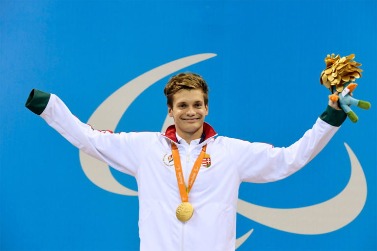 (A nyitóképen Illés Fanni magyar paraúszó mutatja a tokiói paralimpián, 100 méteres mellúszásban nyert aranyérmét. Fotó: Alex Davidson/Getty Images/International Paralympic Committee)
