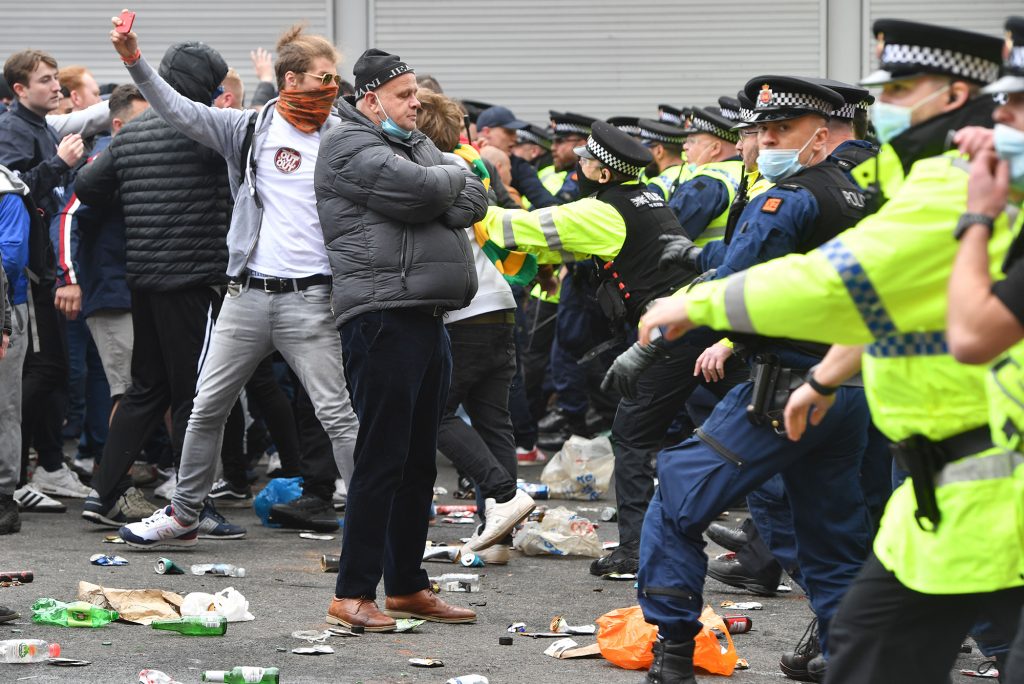 Mindeközben ostrom alá helyezték az Old Traffordot, elzárták az utakat, és a pályára is bementek.