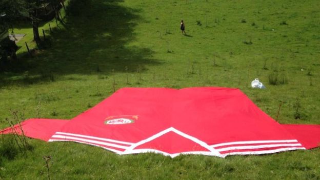 Egy walesi házaspár elkészítette a walesi válogatott mezének hatalmas méretű változatát.