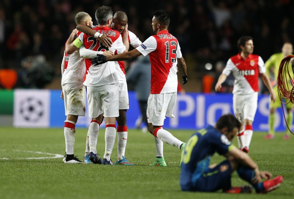 A fenti képen Antoine Griezmann és Juanfran szinkronünnepel az Atlético kínkeserves, tizenegyesekkel kiharcolt továbbjutásának. Aztán jönnek a többiek, Monacóban is nagy volt az öröm, meg persze a csalódás is, hiszen az Arsenal 2–0-ra nyert, mégsem tudott továbblépni, mert otthon a nyolc-tíz helyzetből csak egyet lőtt be.