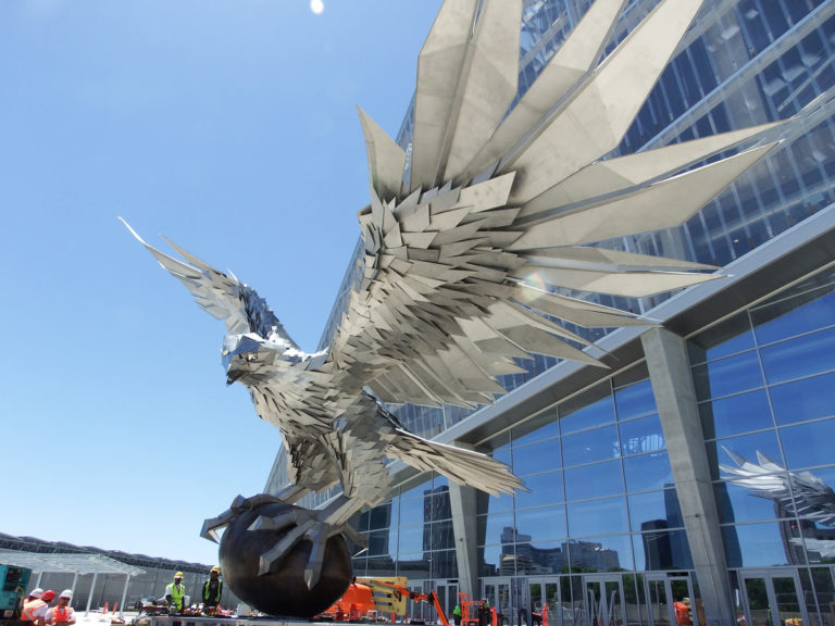 Konkrétan a világ legnagyobb madárszobra várja a szurkolókat az őszre 1,6 milliárd dollárból elkészülő új atlantai stadion előtt: