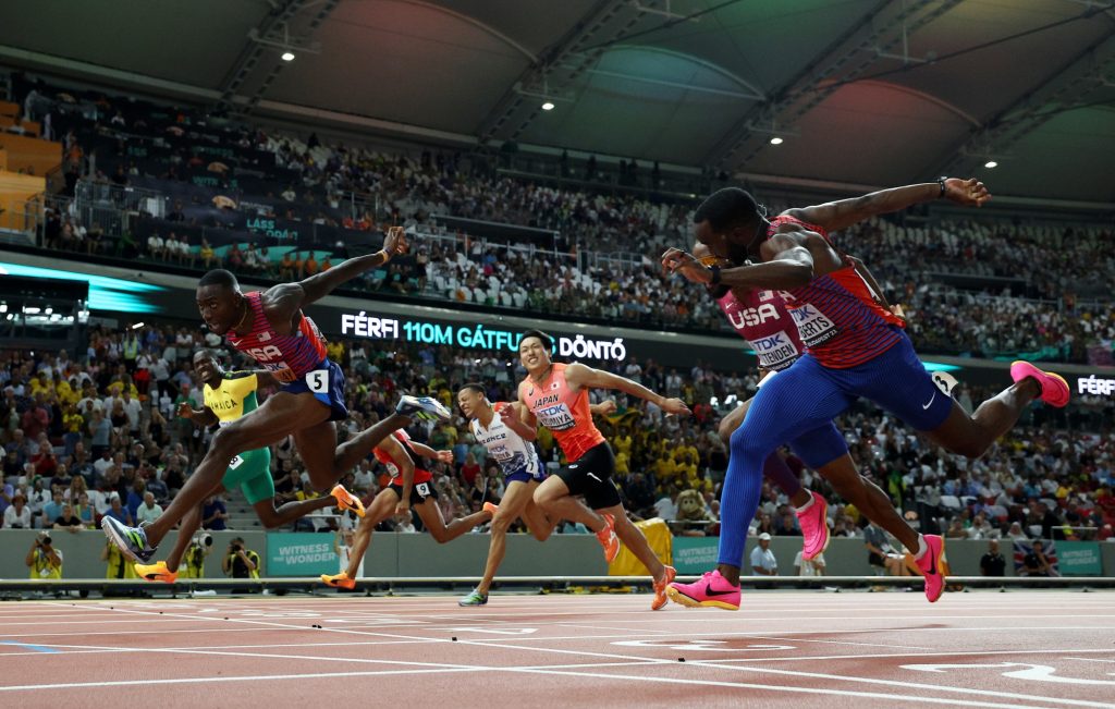 A férfi 110 méteres gátfutóknál nem történt meglepetés, az amerikai Grant Holloway zsinórban harmadszor lett világbajnok, megelőzte az olimpiai bajnok jamaicai Hansle Parchmentet és honfitársát, Daniel Robertset.