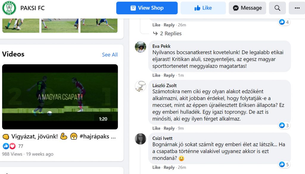 A műsorvezető, és a másik szakértő, Petry Zsolt igyekezett fegyelmezni magát, de a tévénézők kevésbé elnézők Bognár érzéketlensége kapcsán, és kommentek tucatjaiban követelik az M4 Sport Facebook-oldalán Bognár György azonnali elbocsátását, már a Paksi FC Facebook-oldalán is megy az oltás.