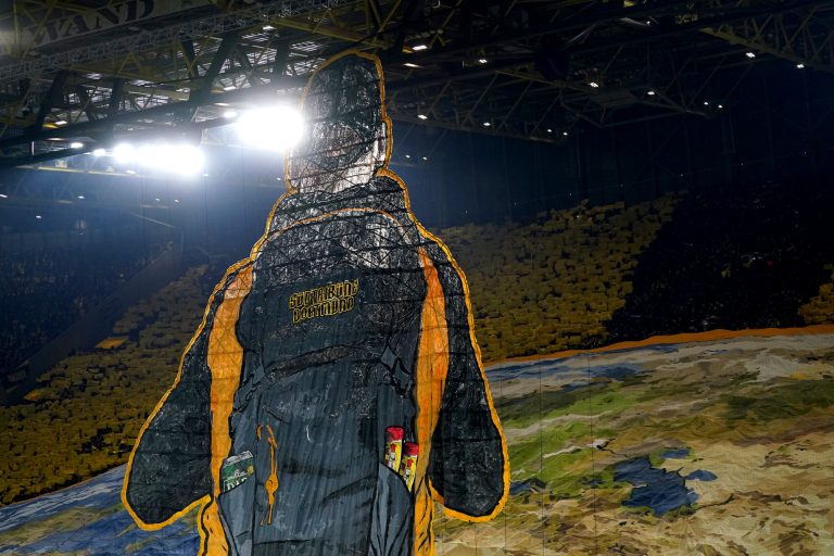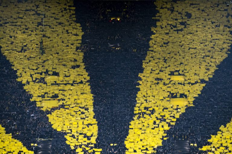 A kezdés előtt a dortmundi szurkolók egy óriási élőképpel várták kedvenceiket. Videón és fotókon is lenyűgöző volt a látvány.