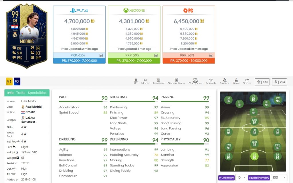 Persze minden mezei játékosnak nem lesz lehetősége megszerezni Modricot, hiszen platformtól függően 4,3-4,7 millió coinért lehet megvásárolni az Ultimate Team piacán. Ez meg azt jelenti, hogy a topjátékosok, a nagyon szerencsések, és azok használhatják, akik nem kevés valódi pénzt áldoznak a játékra.