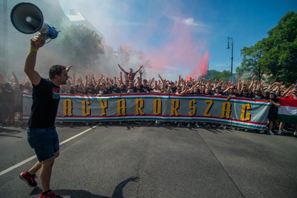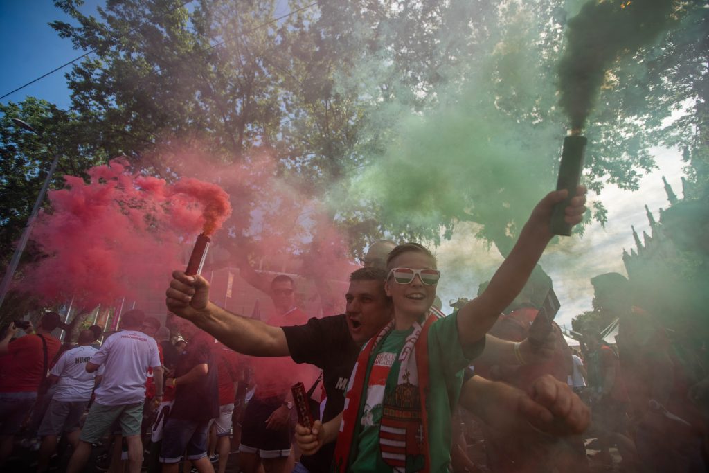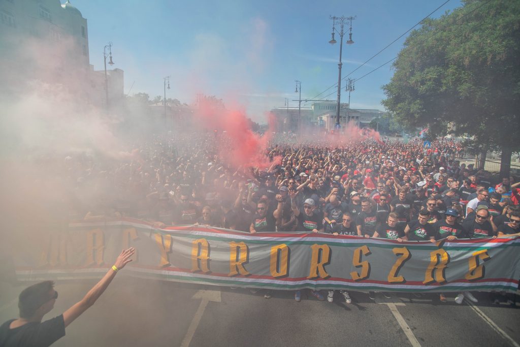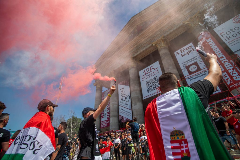 A magyar szurkolók a Hősök terén gyűltek össze, a többezres tömeg pedig már elindult a stadionba – elképesztő látvány, őrült hangulat: