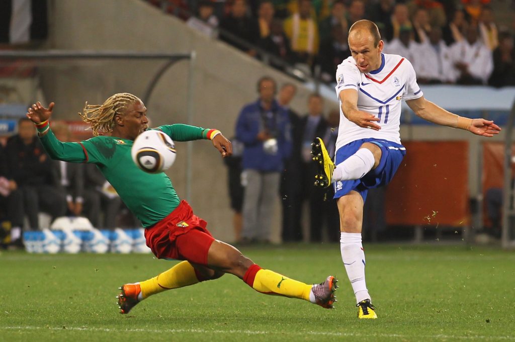 A kameruni válogatott a 2000-es években igazi látványosság volt. A szelídítetlen oroszlánok ujjatlan mezben, vagány focit játszva két Afrika-kupát nyertek az évezred elején. Ennek a csapatnak volt csapatkapitánya Rigobert Song, akinek több emlékezetes hajválasztása volt, az alábbi fotón a 2010-es vb-frizurájával látható, miközben próbálja sikertelenül szerelni Arjen Robbent.